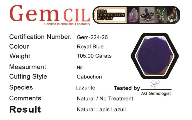 105.00 CARATS NATURAL ROYAL BLUE LAPIS LAZULI 105.00 Carats Natural Royal Blue Lapis Lazuli Stone = Natural Royal Blue Lapis LazuliWeight = 105.00 CaratsTreatment = Natural (Not Dyed) Cut = Cabochon Note = Gem Cil, Certified, 0+26