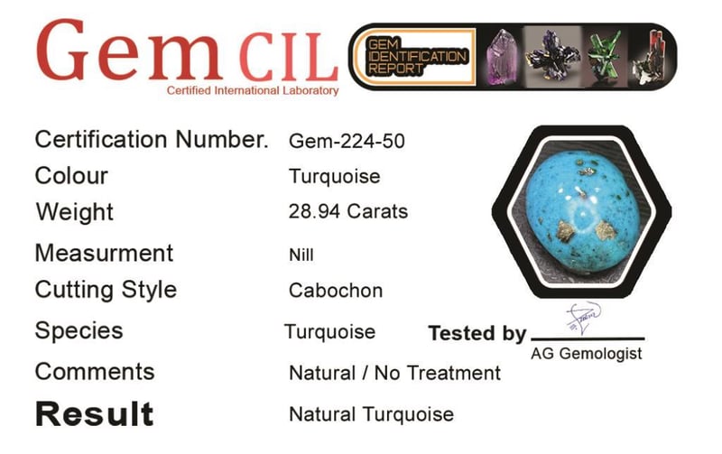 28.94 CARATS NATURAL QUALITY TURQUOISE 28.94 Carats Natural Quality Turquoise Stone = Natural TurquoiseWeight = 28.94 Carats Cut = Cabochon Colour = TurquoiseQuantity = 1Note = Gem Cil, Certified, 0+50