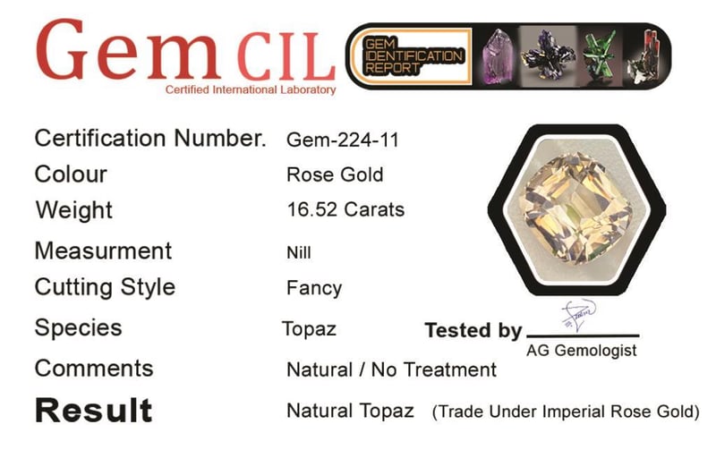 16.52 CARATS NATURAL IMPERIAL ROSE GOLD TOPAZ 16.52 Carats Natural Imperial Rose Gold Topaz Stone = Natural TopazWeight = 16.52 Carats Colour = Rose Gold Cut = Fancy Lustre = Excellent Treatment = Natural, No TreatmentQuality = VvsNote = Precise Custom Cut (Not Commercial)This Natural Topaz Has High Level Of Pleochroism, So Color Intensity Can Vary Upon Different Light Conditions. 0+11