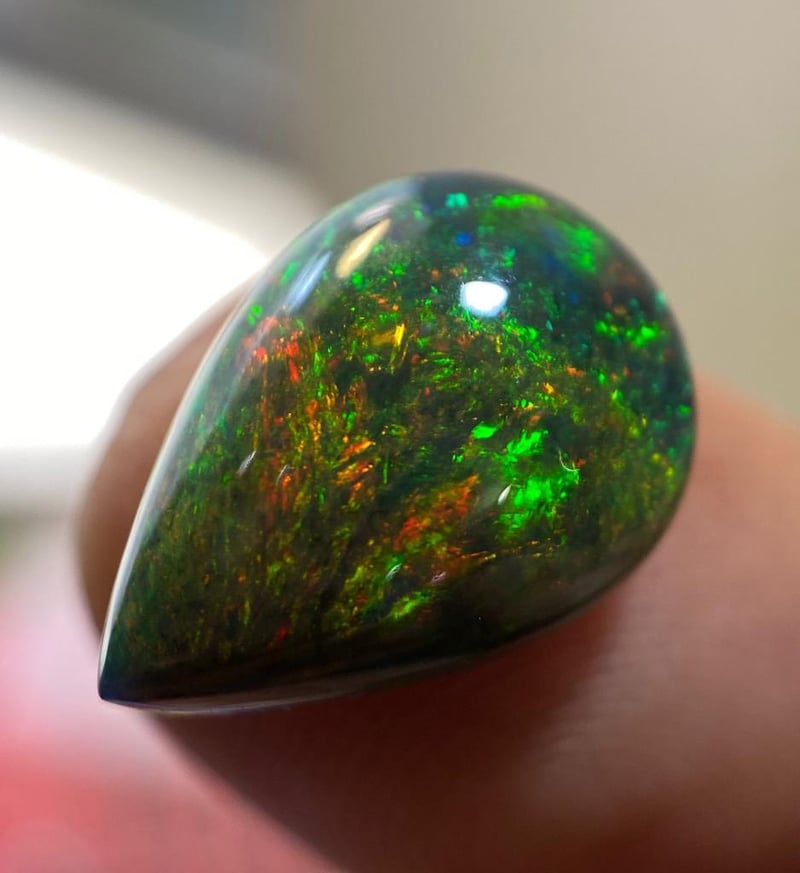 3.50 CARATS NATURAL WELLO-BLACK OPAL 3.50 Carats Natural Wello-Black OpalStone = OpalWeight = 3.50 CaratsColour = Multi-Colour Treatment = SmokedCut = Cabochon Note = Picture Taken Under Light. Condition: Good 0+30