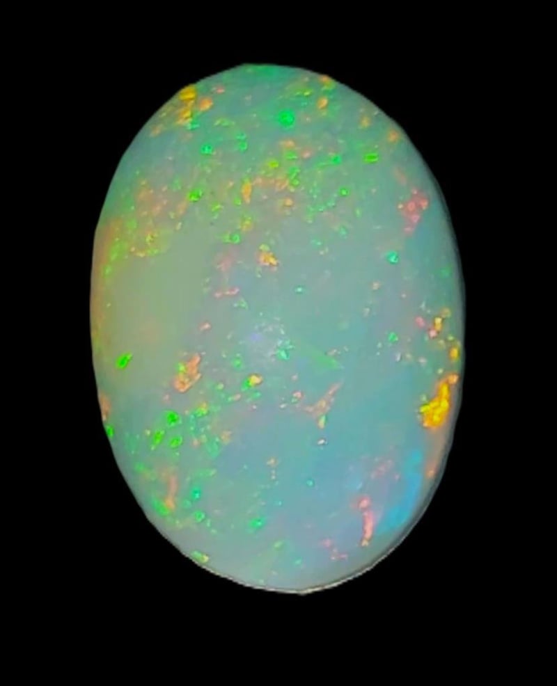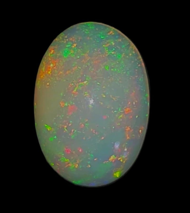4.3 CARATS OF BRILLIANT AFRICAN OPAL Dimensions: 15X10x5mms Cut Into A High Domed Cabochon With Sparkling And Dense Colour Saturation. 0586253+179