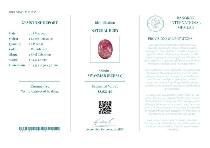 • Verify Report Online At Www.Bangkokinternationalgemlab.Co