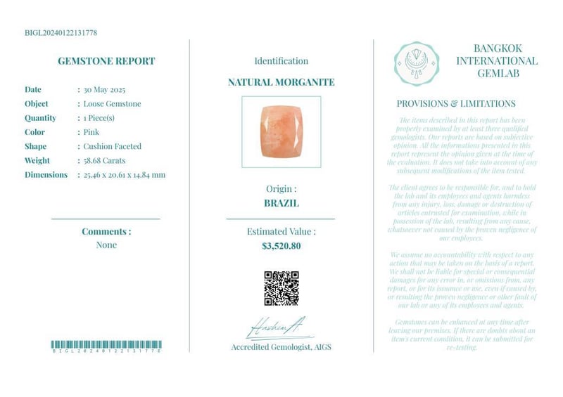 • Verify Report Online At Www.Bangkokinternationalgemlab.Co