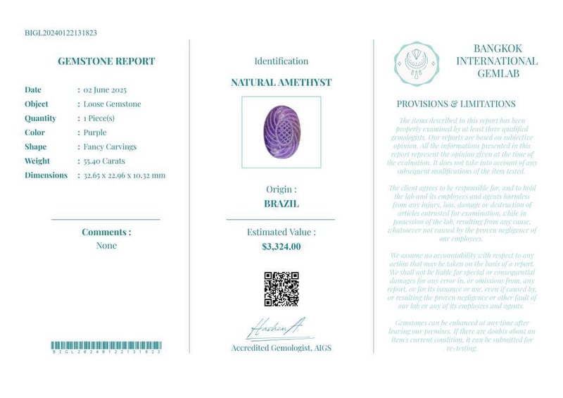 • Verify Report Online At Www.Bangkokinternationalgemlab.Co