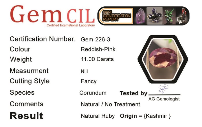 11.00 Carats Natural Kashmir Ruby