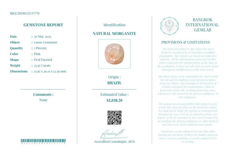• Verify Report Online At Www.Bangkokinternationalgemlab.Co