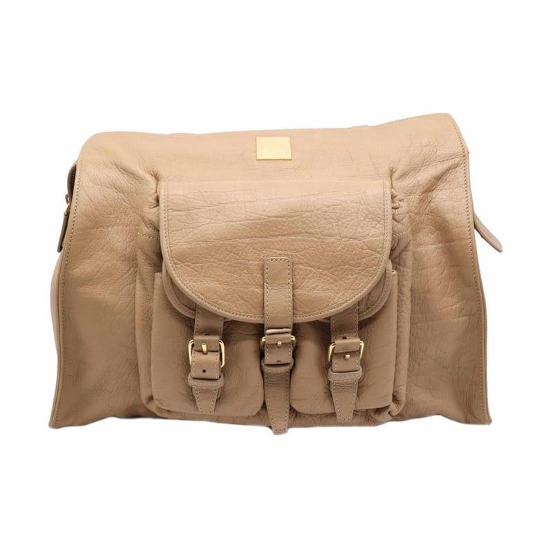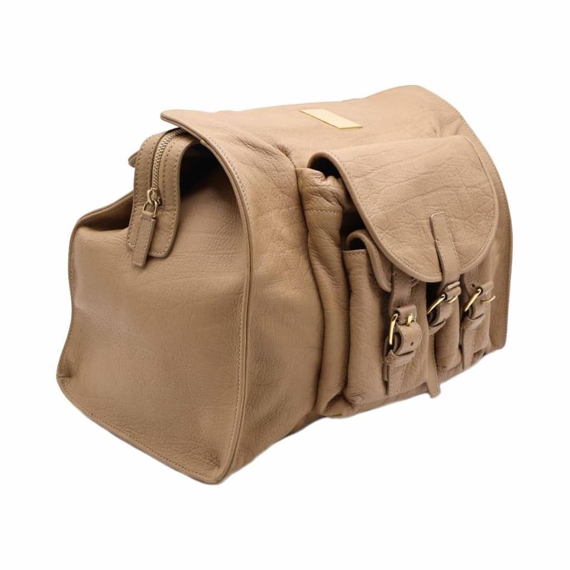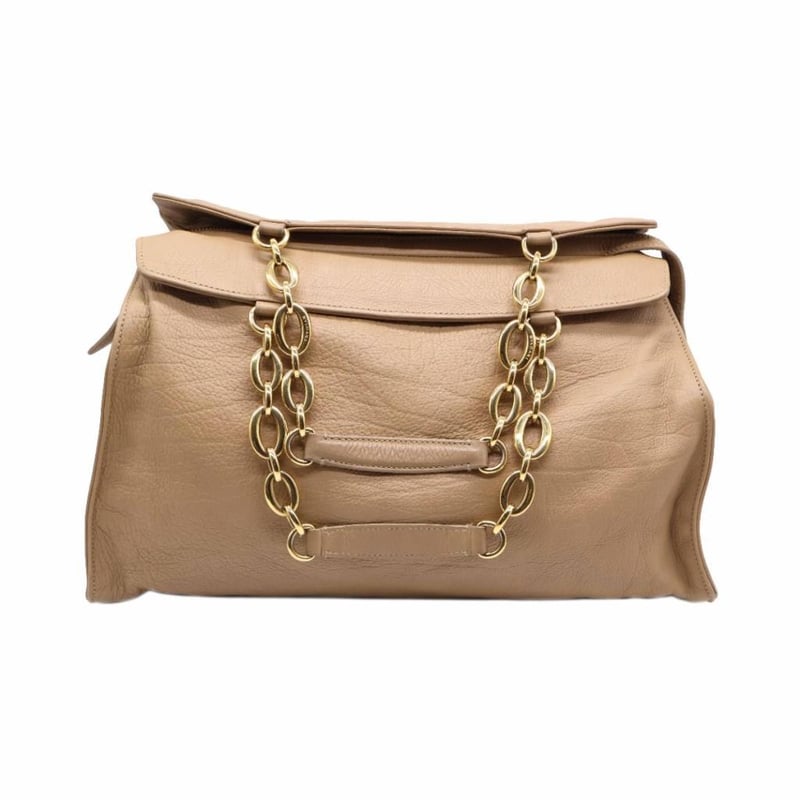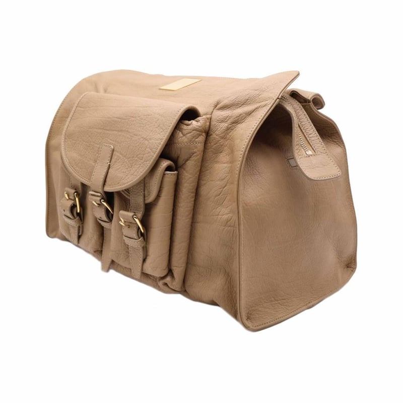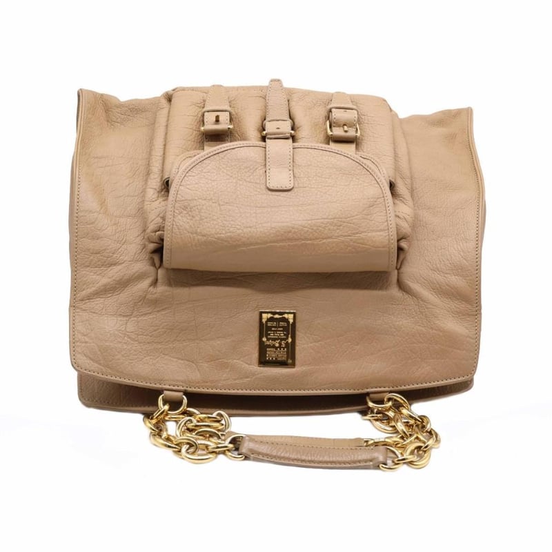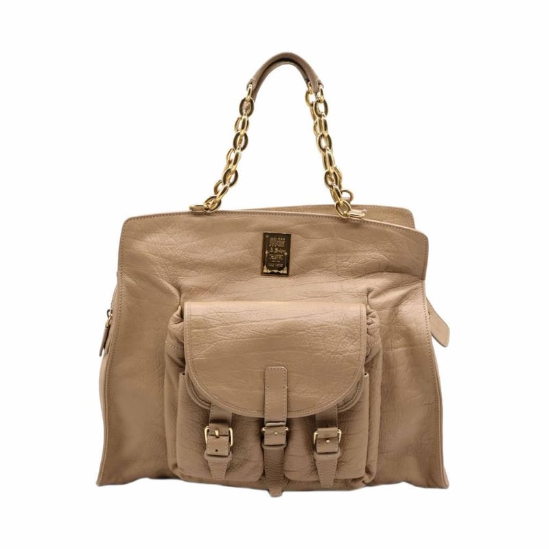 BVLGARI LEATHER TOP HANDLE BAG Length: 38cm Height: 30cm Depth: 20cm Handle Drop: 17cm Exterior Material Leather with gold-tone hardware, three front flap pockets, top zip closure and dual top handles. Interior Material Leather lining with a main compartment and a zipped pocket. Additional Condition Report - Moderate sign of wear and tears on exterior - Moderate scuffs on exterior corners - Minor wear and visible tears in interior - Sign of wear and scratches on hardware Comes With - Certificate of Authenticity CROSS DOCKED 162802+11