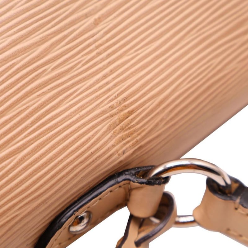 LOUIS VUITTON EPI LEATHER CLUNY MM DUNE Exterior Material Epi leather with silver-tone hardware, single top handle, front flap magnetic closure, protective metal feet and a shoulder strap. Interior Material Microfiber lining with a main compartment, a zipped compartment and two patch pockets. Length: 30cm Height: 24cm Depth: 11cm Handle Drop: 12cm Strap Drop: 37cm Detachable Additional Condition Report - Moderate sign of wear, tears and scratches on exterior - Minor scuffs on exterior corners - Minor wear in interior - Sign of wear and scratches on hardware Comes With - A Detachable Strap - Certificate of Authenticity CROSSED DOCKED 155556+09