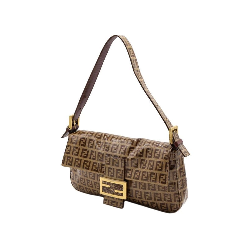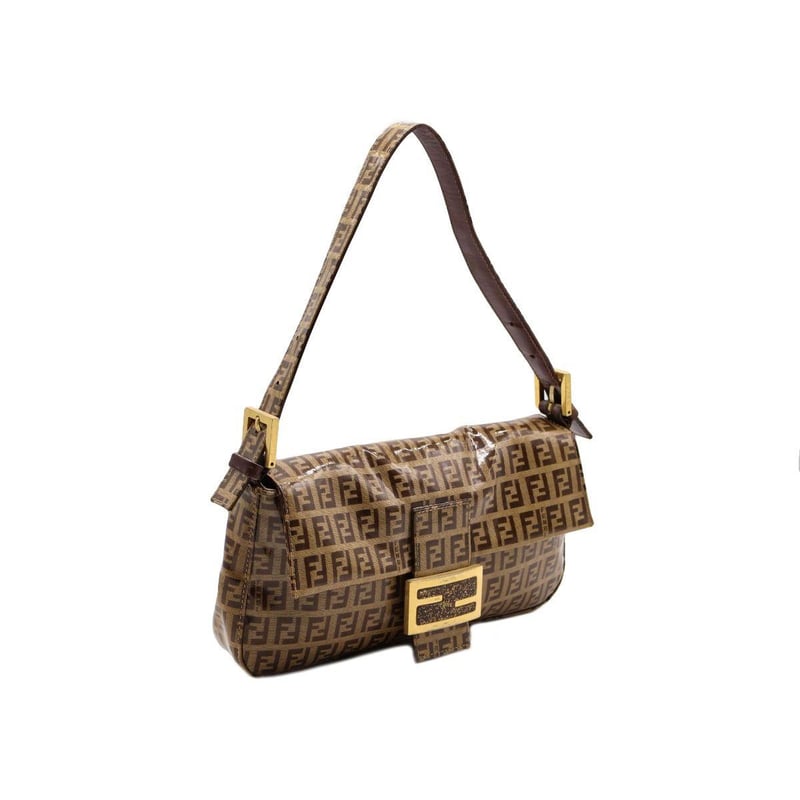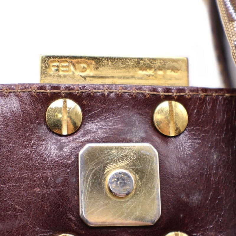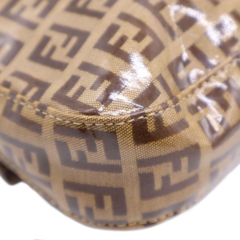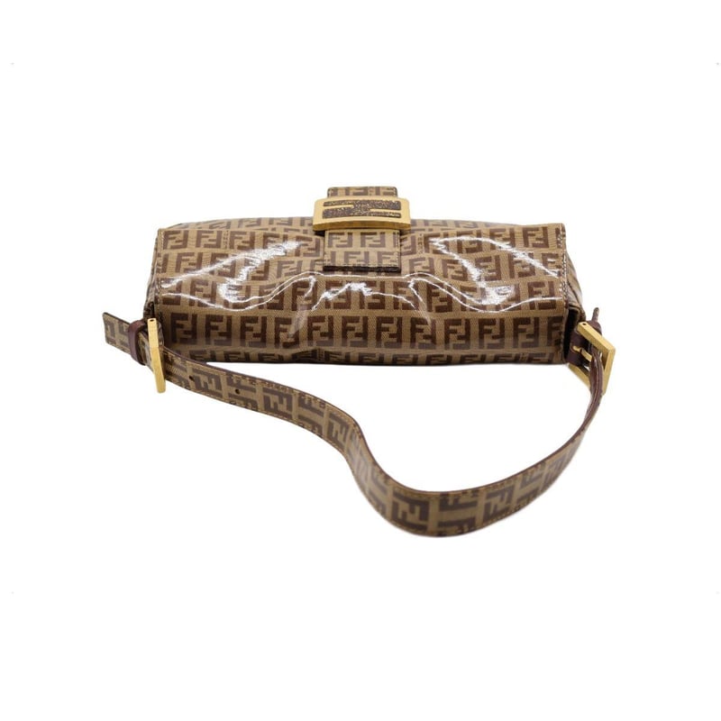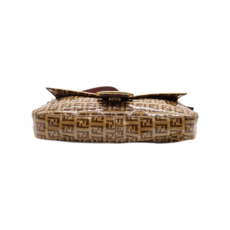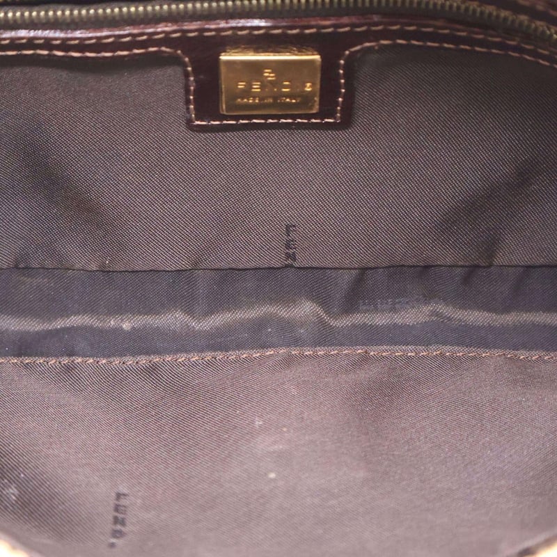 Patent leather with gold-tone hardware, snap button closure and single top handle.