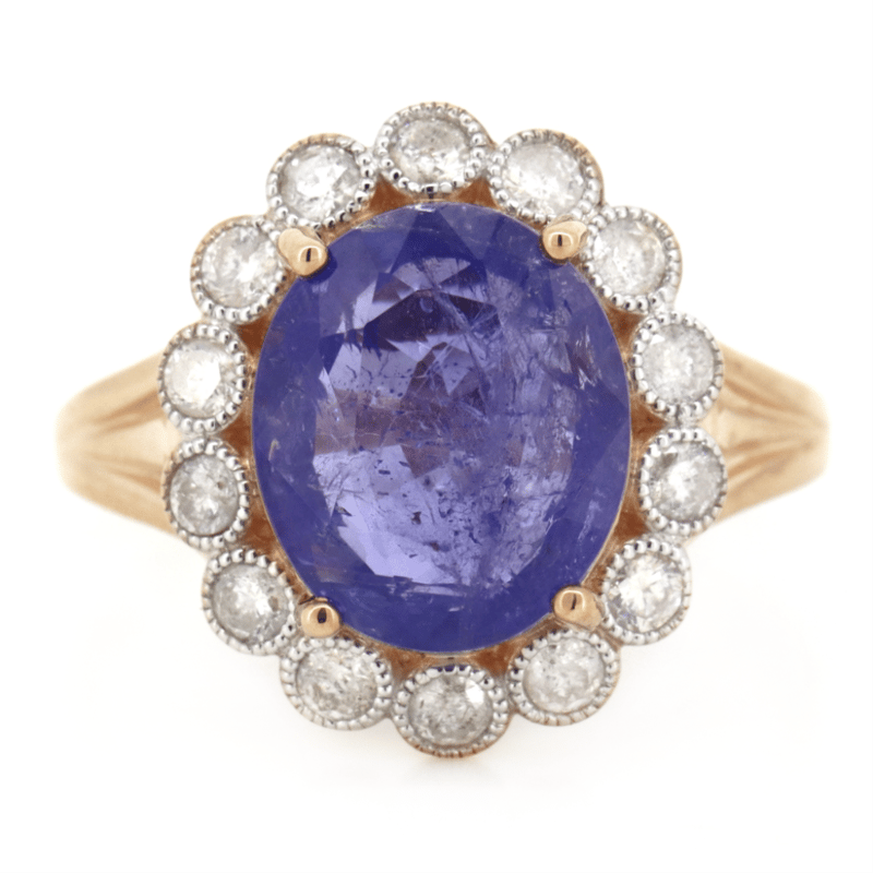 14K ROSE GOLD, TANZANITE AND DIAMOND, HALO RING. THE CENTRE FEATURES, ONE OVAL CUT, MEDIUM VIOLETISH-BLUE, TANZANITE (4.78CT, INCLUDED), BEZEL SET. SURROUNDING THE CENTRE IN A HALO ARE, 14 ROUND BRILLIANT CUT, DIAMONDS (0.52CT TDW, J-K COLOUR, SI2-I1 CLARITY), BEZEL/BEAD SET. RING SIZE P. Jewellery Valuations Provided By A Third Party Professional Not Directly Associated With Lloyds Auctions at AUD $8,690.00This Insurance Valuation has been provided by a registered Jewellery Valuer and is intended for insurance purposes only. The valuation amount has no bearing on the auction value of the item. Any questions regarding the valuation should be directed to the issuing Valuer (refer to contact details on the certificate) as Lloyds have no association or relationship with the Valuer or the valuation amount contained within the valuation. Condition: Good - Refer Images 0645856+1691
