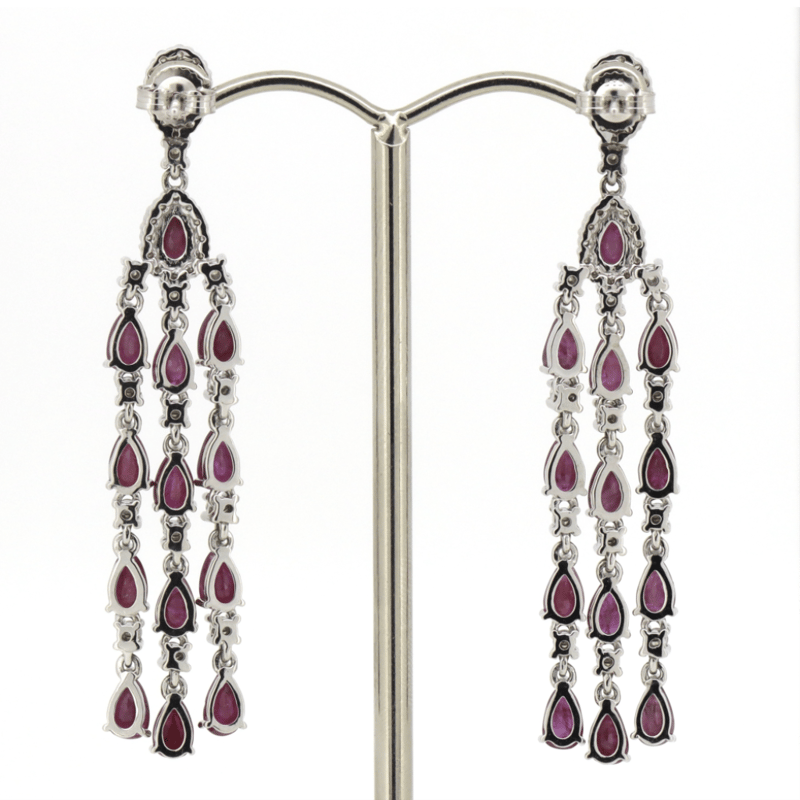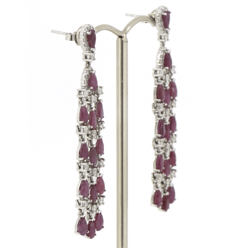 14K WHITE GOLD, RUBY AND DIAMOND, CHANDELIER EARRINGS.