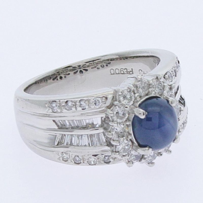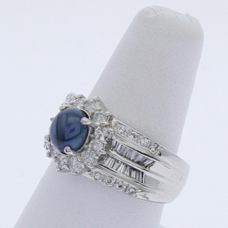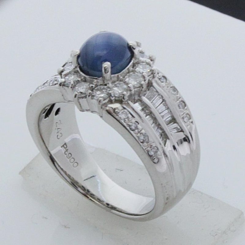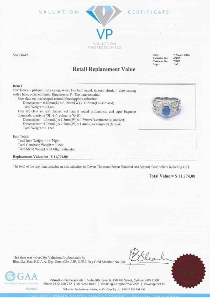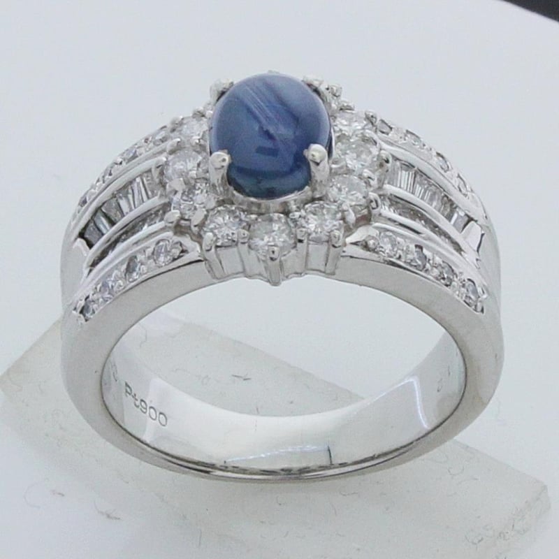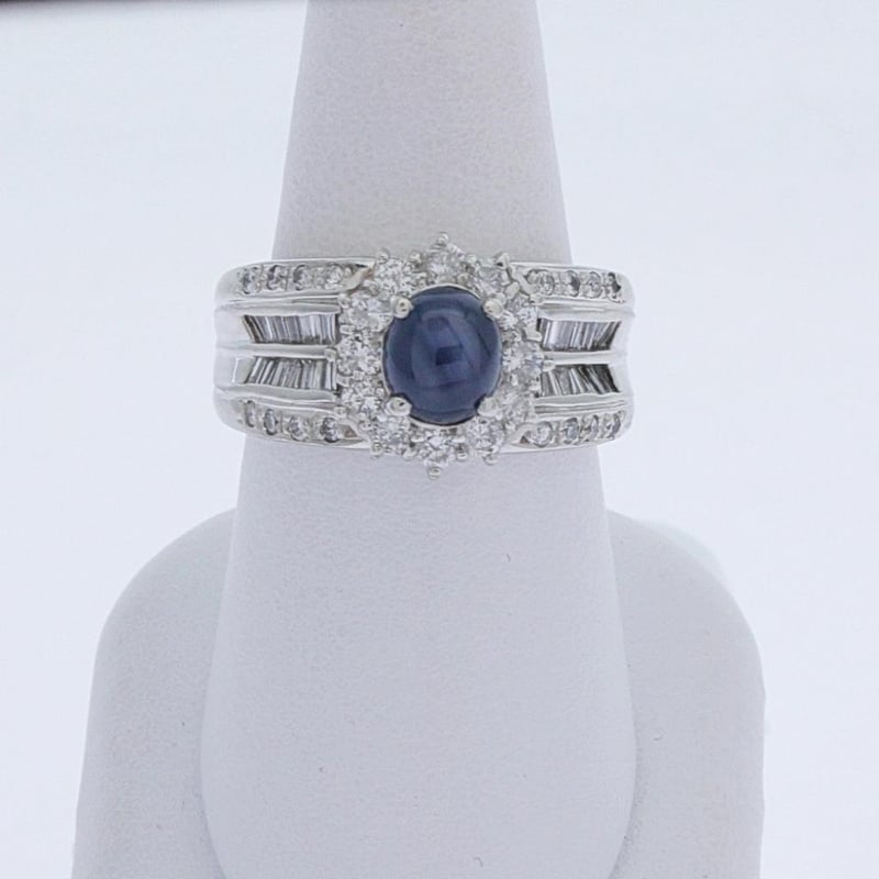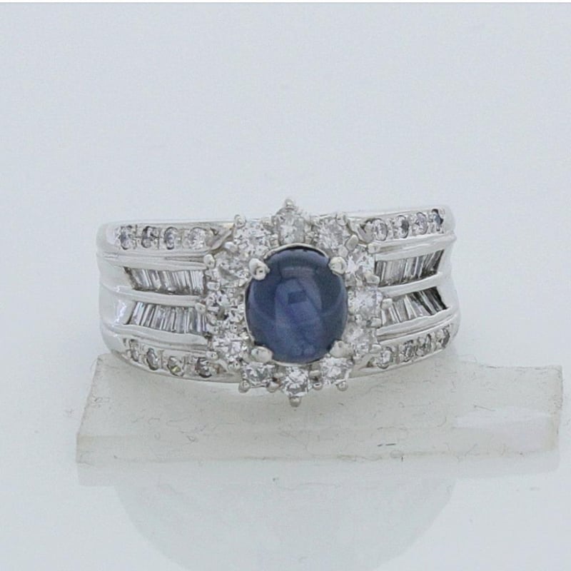 One Claw Set Oval Shaped Natural Blue Sapphire Cabochon.