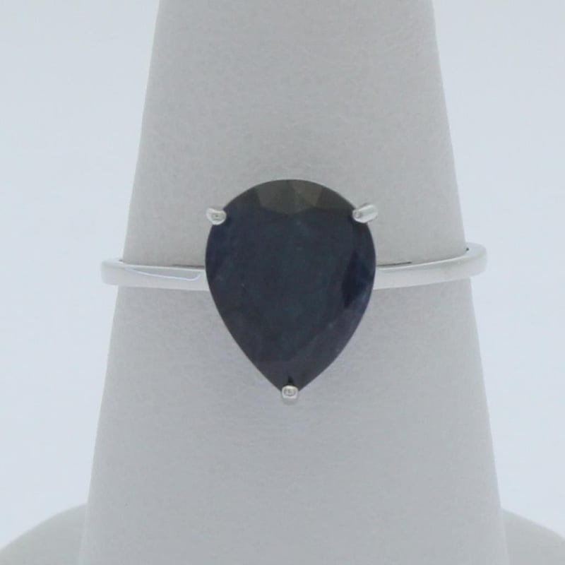One Claw Set Brilliant Cut Pear Shaped Natural Blue Sapphire, Colour Is "Very Dark, Strong, Blue".