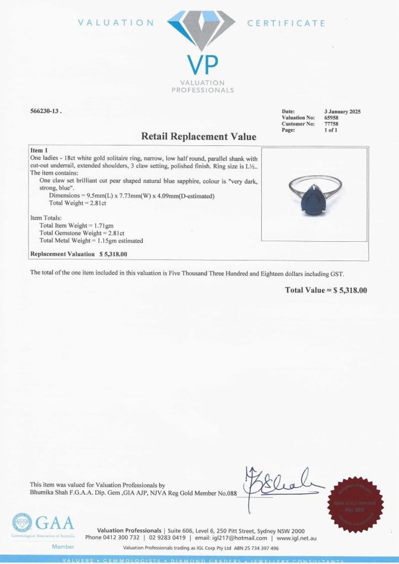 This valuation has been conducted by an independent third-party professional. The valuation amount is an assessment by the issuing valuer and does not reflect the auction value of the item.