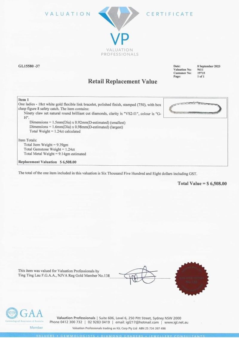 One Ladies - 18Ct White Gold Flexible Link Tennis Bracelet, Polished Finish, Stamped (750), With Box Clasp Figure 8 Safety Catch. The Item Contains: