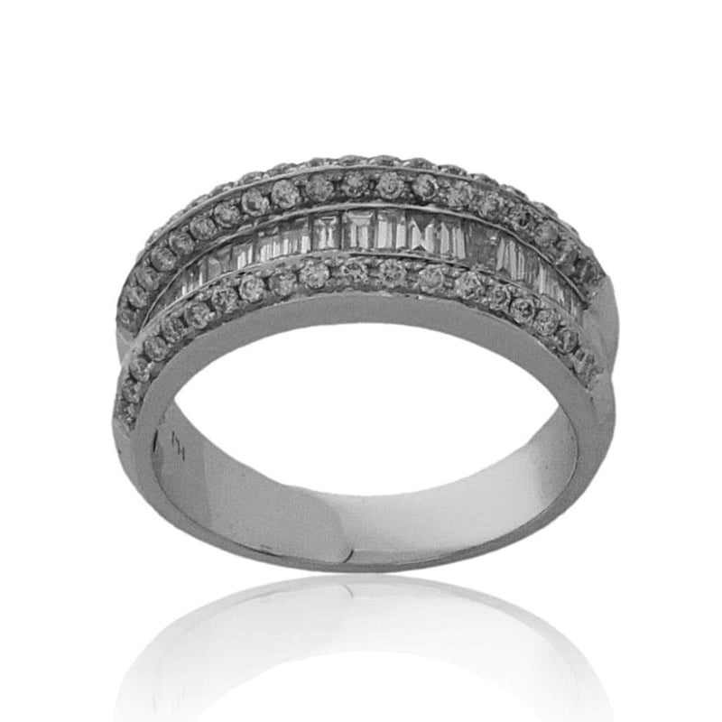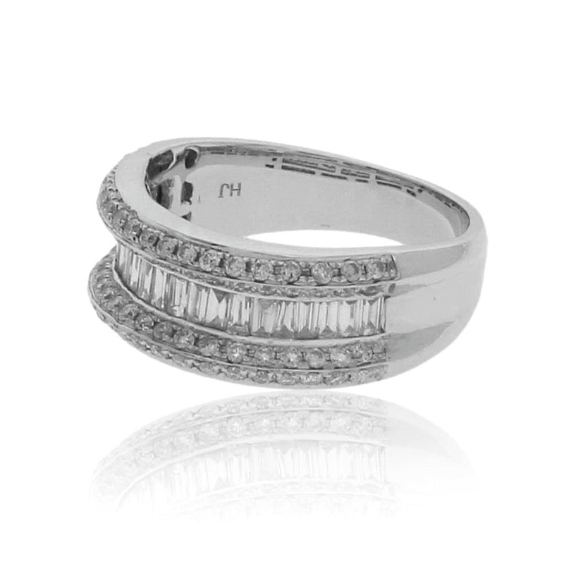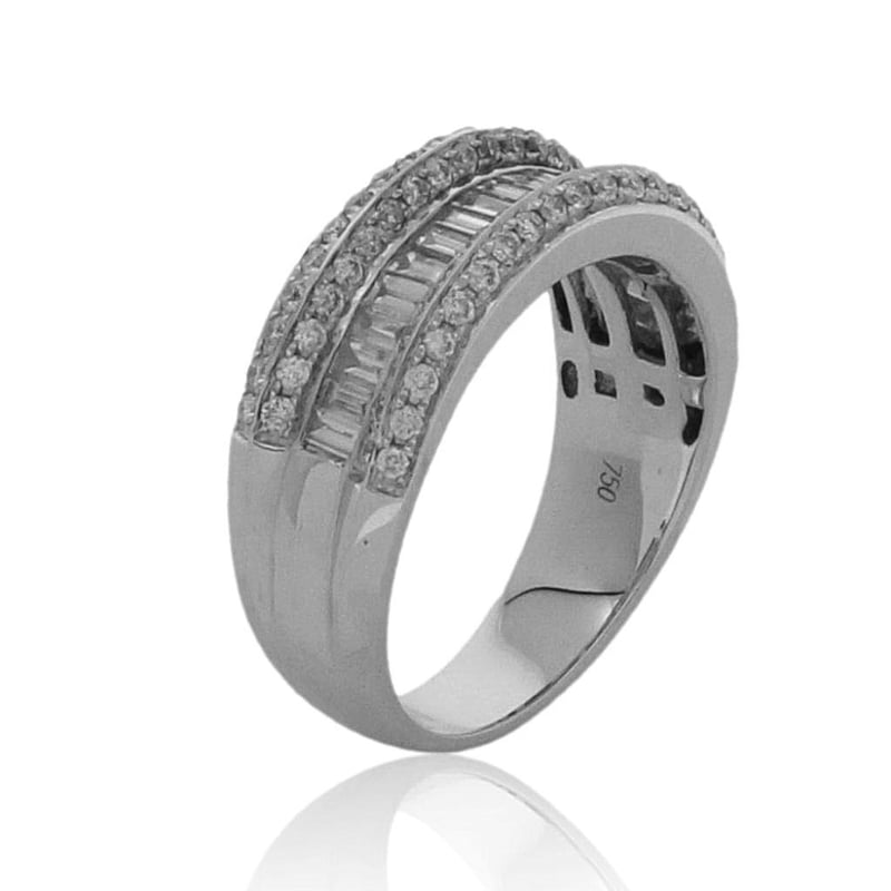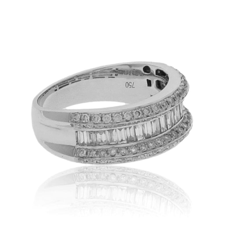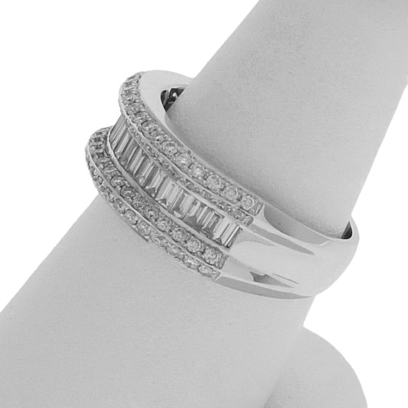 18CT WHITE GOLD DRESS RING One Ladies - 18Ct White Gold Dress Ring, Wide, Low Half Round, Tapered Shank, Multi-Claw Setting, Polished Finish. The Item Contains: Twenty Channel Set Baguette And Tapered Baguette Diamonds, Clarity Is "Vs2-Si", Colour Is "H". Dimensions = 2.6Mm(L) X 1.4Mm(W) X 0.85Mm(D-Estimated) Total Weight = 0.53Ct Calculated Seventy Six Claw Set Round Brilliant Cut Diamonds, Clarity Is "Vs2-Si2", Colour Is "H". Dimensions = 1.3Mm(Dia) X 0.79Mm(D-Estimated) Total Weight = 0.59Ct Calculated Item Totals: Total Item Weight = 6.60Gm Total Gemstone Weight = 1.12Ct Total Metal Weight = 6.38Gm Estimated Valuations Provided by an Independent Third-Party Professional Not Directly Associated With Lloyds Auctions at AUD $7376 This valuation has been conducted by an independent third-party professional. The valuation amount is an assessment by the issuing valuer and does not reflect the auction value of the item. Any inquiries regarding the valuation should be directed to the issuing valuer (refer to contact details on the certificate), as Lloyds Auctions has no affiliation or influence over the valuation, the valuer, or the stated amount. Condition: Good - Refer Images 0 488973+9