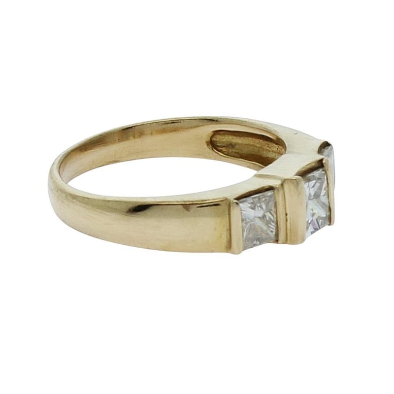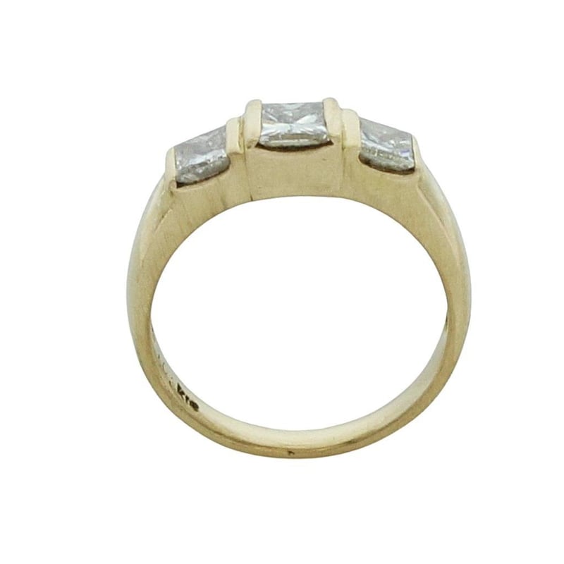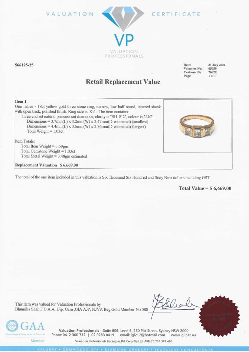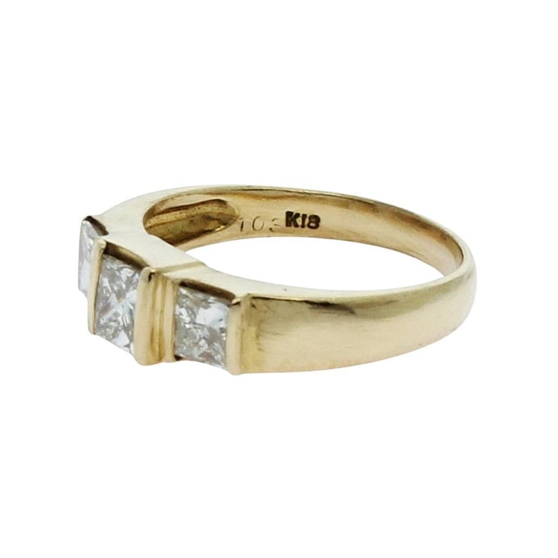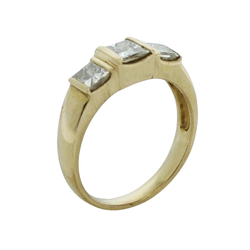 One Ladies - 18Ct Yellow Gold Three Stone Ring, Narrow, Low Half Round, Tapered Shank With Open Back, Polished Finish. Ring Size Is: K½.. The Item Contains: