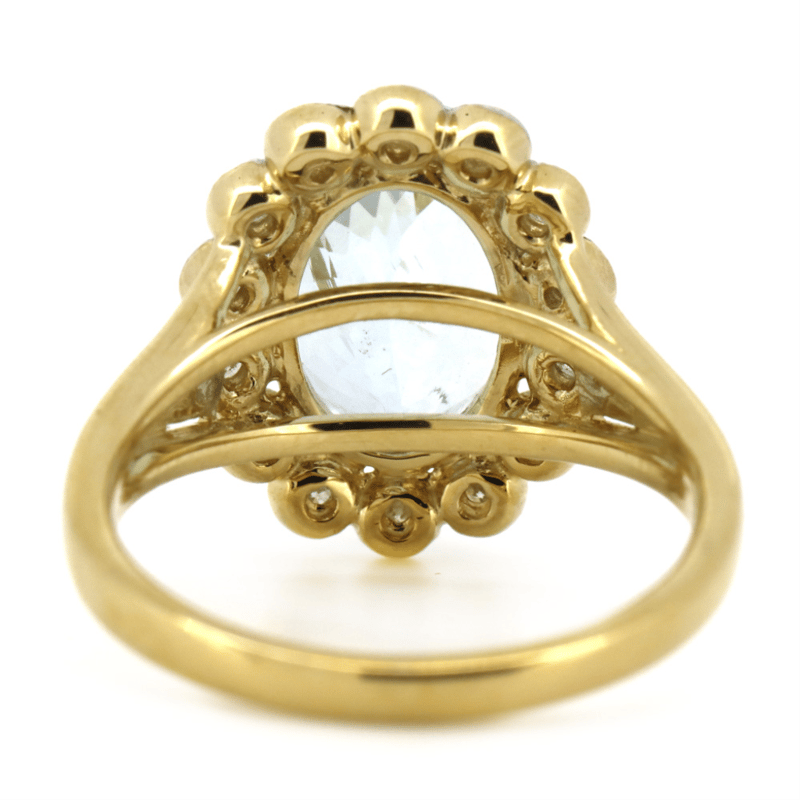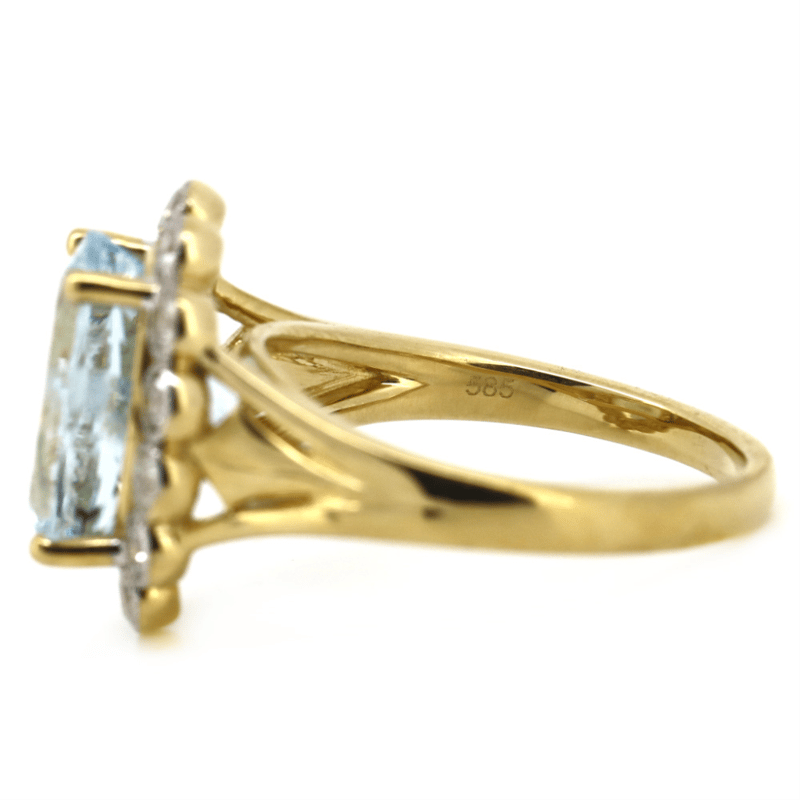 14K YELLOW GOLD, AQUAMARINE AND DIAMOND, HALO RING. The Centre Features, One Oval Cut, Light Greyish-Blue, Aquamarine (4.37Ct, Very Minor Eye Visible Inclusions), Claw Set. Surrounding The Centre In A Halo Are, 14 Round Brilliant Cut, Diamonds (0.60Ct Tdw, J-K Colour, Si2-I2 Clarity), Bezel Set In White Gold With Millegrain Detail. Ring Size O. 14K Yellow Gold, Aquamarine And Diamond, Halo Ring. The Centre Features, One Oval Cut, Light Greyish-Blue, Aquamarine (4.37Ct, Very Minor Eye Visible Inclusions), Claw Set. Surrounding The Centre In A Halo Are, 14 Round Brilliant Cut, Diamonds (0.60Ct Tdw, J-K Colour, Si2-I2 Clarity), Bezel Set In White Gold With Millegrain Detail. Ring Size O. Jewellery Valuations Provided By A Third Party Professional Not Directly Associated With Lloyds Auctions at AUD $9,390.00This Insurance Valuation has been provided by a registered Jewellery Valuer and is intended for insurance purposes only. The valuation amount has no bearing on the auction value of the item. Any questions regarding the valuation should be directed to the issuing Valuer (refer to contact details on the certificate) as Lloyds have no association or relationship with the Valuer or the valuation amount contained within the valuation. Condition: NEW 0584876+1453