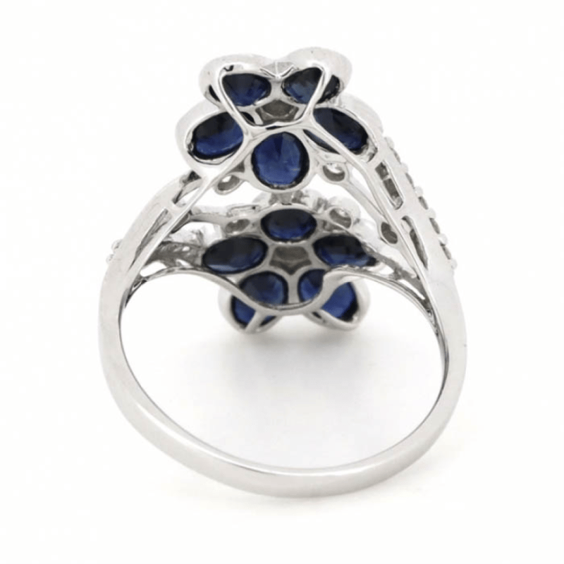 14K WHITE GOLD, BLUE SAPPHIRE AND DIAMOND, FLOWER DESIGN RING. Representing The Flower Petals Are, 10 Oval Cut, Dark Royal Blue, Sapphires (2.00Ct Tsw, Included), Bezel Set. Centering The Flowers Are Decorating The Design Are, 18 Round Brilliant Cut, Diamonds (0.18Ct Tdw, J-K Colour, Si2-I2 Clarity), Bead/Bezel Set. Ring Size K 1/2. 14K White Gold, Blue Sapphire And Diamond, Flower Design Ring. Representing The Flower Petals Are, 10 Oval Cut, Dark Royal Blue, Sapphires (2.00Ct Tsw, Included), Bezel Set. Centering The Flowers Are Decorating The Design Are, 18 Round Brilliant Cut, Diamonds (0.18Ct Tdw, J-K Colour, Si2-I2 Clarity), Bead/Bezel Set. Ring Size K 1/2. Jewellery Valuations Provided By A Third Party Professional Not Directly Associated With Lloyds Auctions at AUD $4,690.00This Insurance Valuation has been provided by a registered Jewellery Valuer and is intended for insurance purposes only. The valuation amount has no bearing on the auction value of the item. Any questions regarding the valuation should be directed to the issuing Valuer (refer to contact details on the certificate) as Lloyds have no association or relationship with the Valuer or the valuation amount contained within the valuation. Condition: NEW 0584876+1486