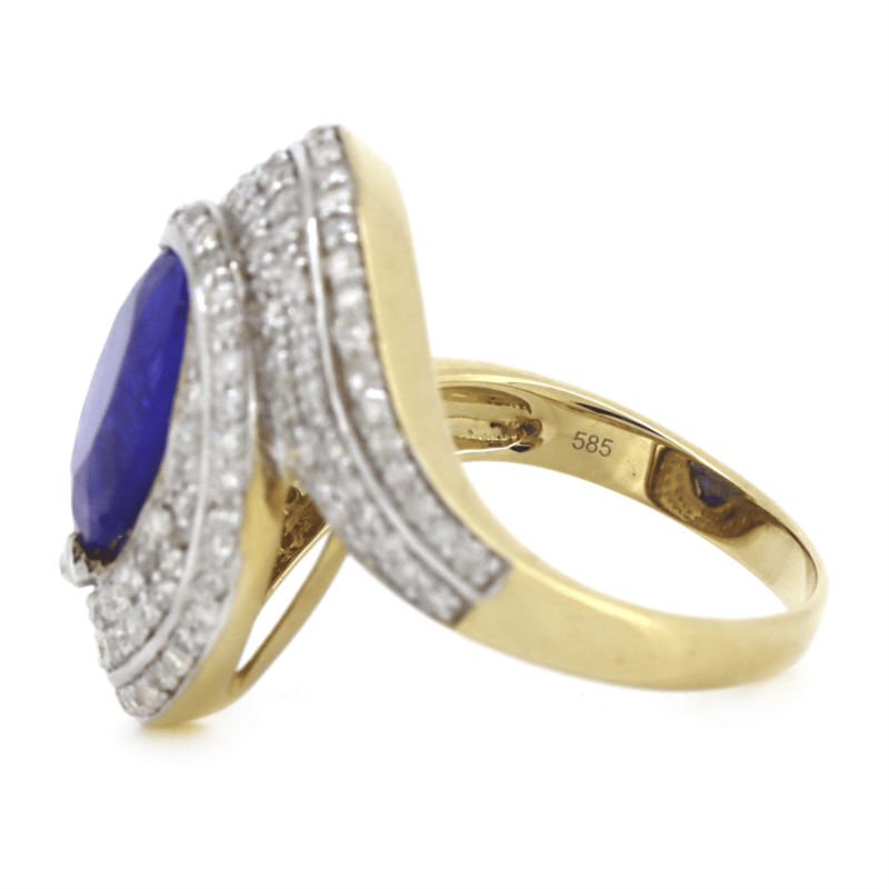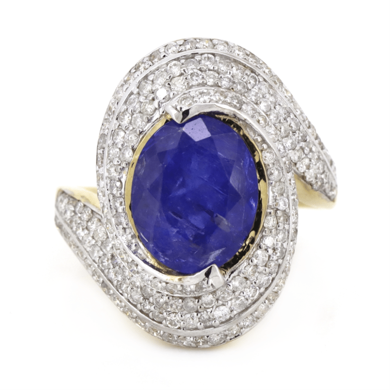 14K YELLOW/WHITE GOLD, TANZANITE AND DIAMOND, SWIRL CLUSTER RING. The Centre Features, One Oval Cut, Medium Purplish-Blue, Tanzanite (3.95Ct, Included), Claw Set. Surrounding The Centre In A Swirl Are, 65 Round Brilliant Cut, Diamonds (1.13Ct Tdw, J-K Colour, Si2-I2 Clarity), Bead Set In White Gold. Ring Size P. Valuations Provided by an Independent Third-Party Professional Not Directly Associated With Lloyds Auctions at AUD $$9,290.00This valuation has been conducted by an independent third-party professional. The valuation amount is an assessment by the issuing valuer and does not reflect the auction value of the item. Any inquiries regarding the valuation should be directed to the issuing valuer (refer to contact details on the certificate), as Lloyds Auctions has no affiliation or influence over the valuation, the valuer, or the stated amount. Condition: Good - Refer Images 0645888+1354