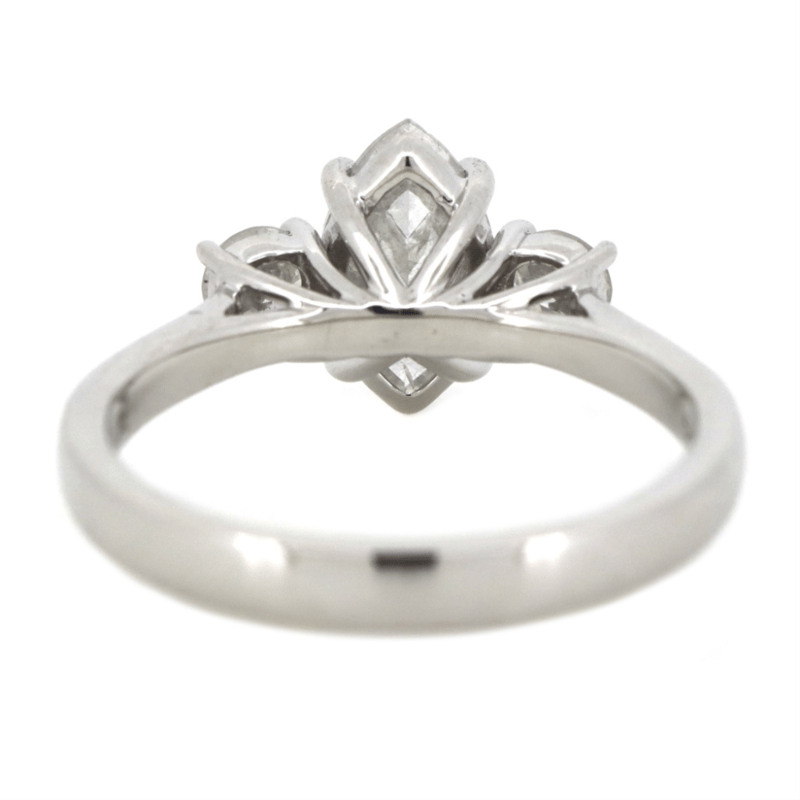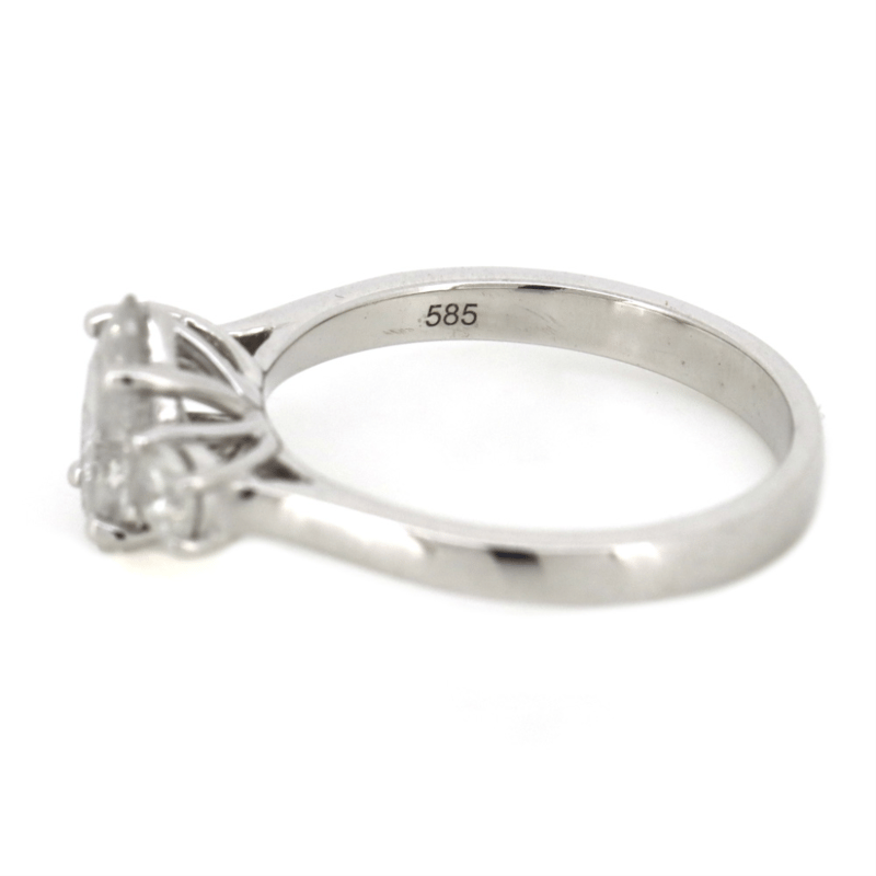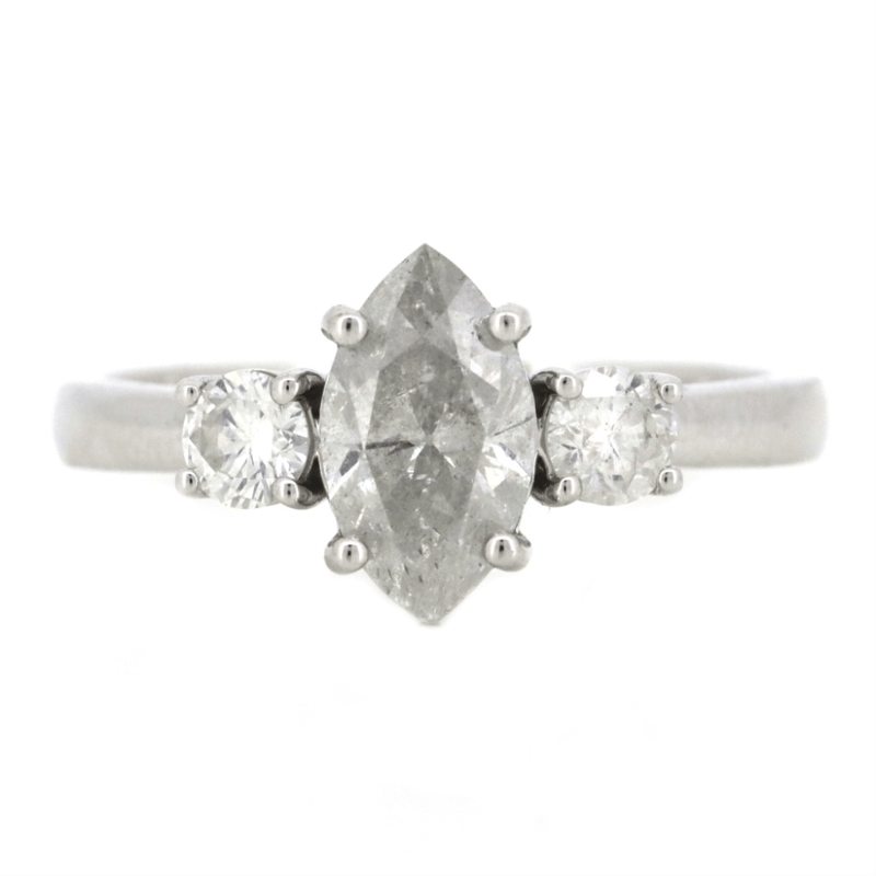 14K WHITE GOLD AND DIAMOND, TRILOGY RING. The Centre Features, One Marquise Cut, Diamond (1.00Ct, G-H Colour, I2+ Clarity), Claw Set. Flanking Either Side Of The Centre Are, 2 Round Brilliant Cut, Diamonds (0.28Ct Tdw, G-H Colour, Si2-I1 Clarity), Claw Set. Ring Size M. Valuations Provided by an Independent Third-Party Professional Not Directly Associated With Lloyds Auctions at AUD $$18,800.00This valuation has been conducted by an independent third-party professional. The valuation amount is an assessment by the issuing valuer and does not reflect the auction value of the item. Any inquiries regarding the valuation should be directed to the issuing valuer (refer to contact details on the certificate), as Lloyds Auctions has no affiliation or influence over the valuation, the valuer, or the stated amount. Condition: Good - Refer Images 0645913+1