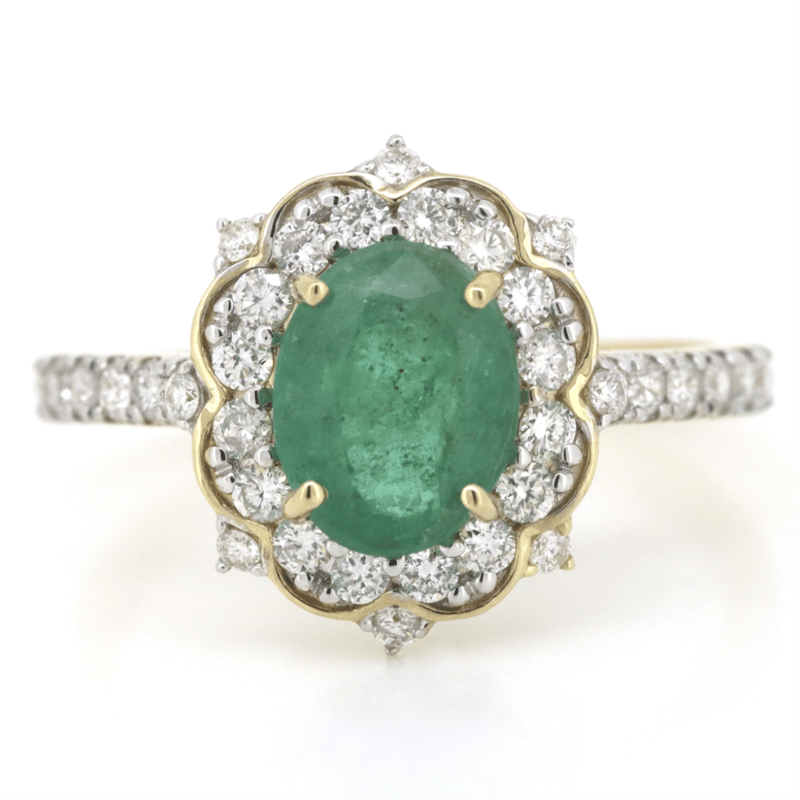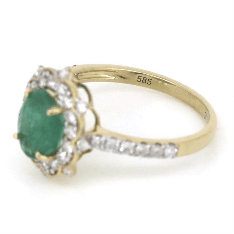 14K YELLOW GOLD, EMERALD AND DIAMOND, DRESS RING. The Centre Features, One Oval Cut, Medium Green, Emerald (1.71Ct, Moderate-Heavy Inclusions), Claw Set. Decorating The Halo And The Band Are, 36 Round Brilliant Cut, Diamonds (0.56Ct Tdw, G-J Colour, Si-I2 Clarity), Bead Set. Ring Size N. Valuations Provided by an Independent Third-Party Professional Not Directly Associated With Lloyds Auctions at AUD $$15,200.00This valuation has been conducted by an independent third-party professional. The valuation amount is an assessment by the issuing valuer and does not reflect the auction value of the item. Any inquiries regarding the valuation should be directed to the issuing valuer (refer to contact details on the certificate), as Lloyds Auctions has no affiliation or influence over the valuation, the valuer, or the stated amount. Condition: Good - Refer Images 0645913+7