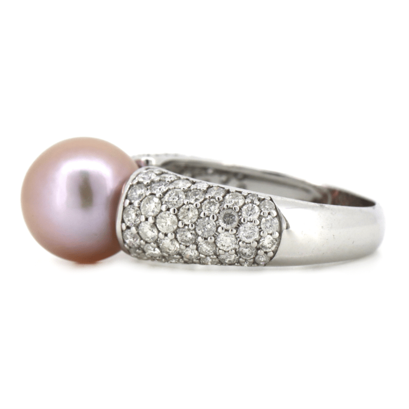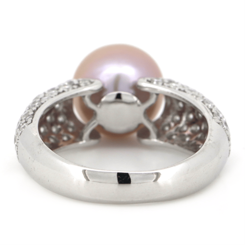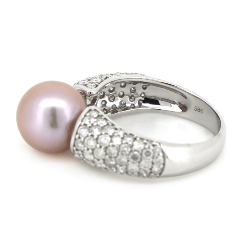 The Design Features, One Round, Pinkish-Purple, Cultured South Sea Pearl (7.78Ct, 9.50-10.00Mm, Excellent Lustre). Encompassing The Design Are, 84 Round Brilliant Cut, Diamonds (1.37Ct Tdw, H-K Colour, P2-P3 Clarity), Bead Set. Ring Size O 1/2.