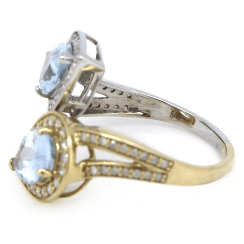 14K WHITE/YELLOW GOLD, AQUAMARINE AND DIAMOND, OPEN BAND DRESS RING.