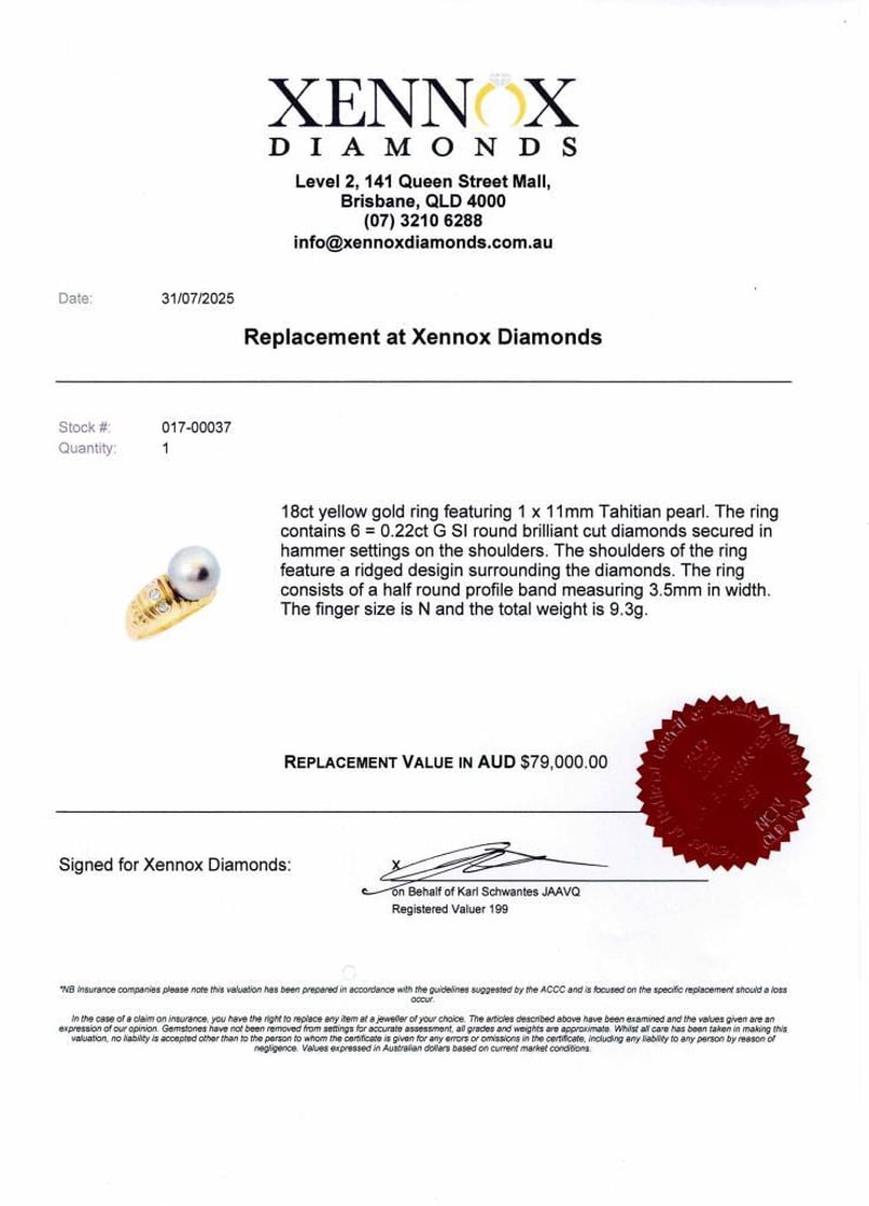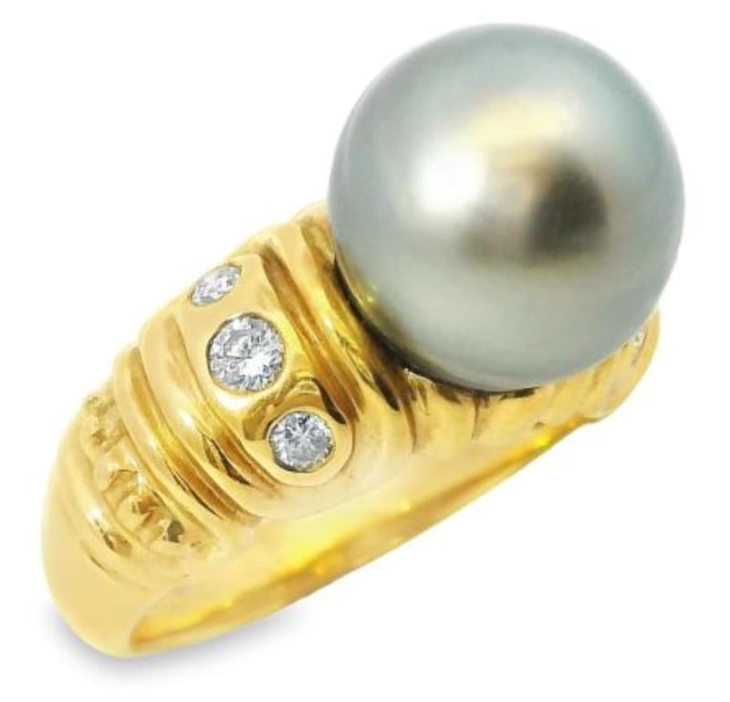18Ct Yellow Gold Ring, Adorned With A Mesmerizing 11Mm Tahitian Pearl As Its Centerpiece