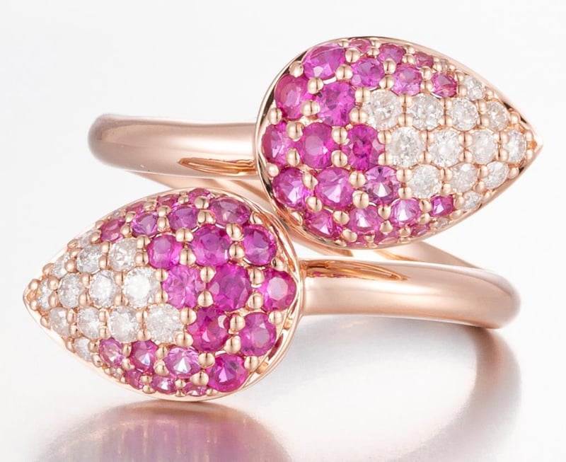 14CT ROSE GOLD PINK CEYLON SAPPHIRE AND DIAMOND DRESS RING