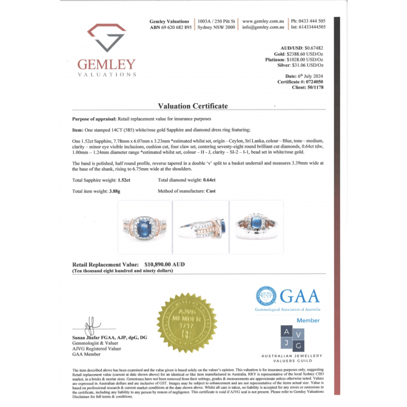 This valuation has been conducted by an independent third-party professional. The valuation amount is an assessment by the issuing valuer and does not reflect the auction value of the item.
