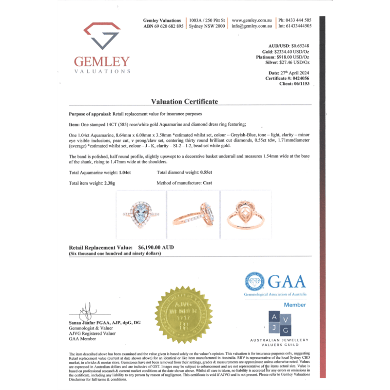 This valuation has been conducted by an independent third-party professional. The valuation amount is an assessment by the issuing valuer and does not reflect the auction value of the item.