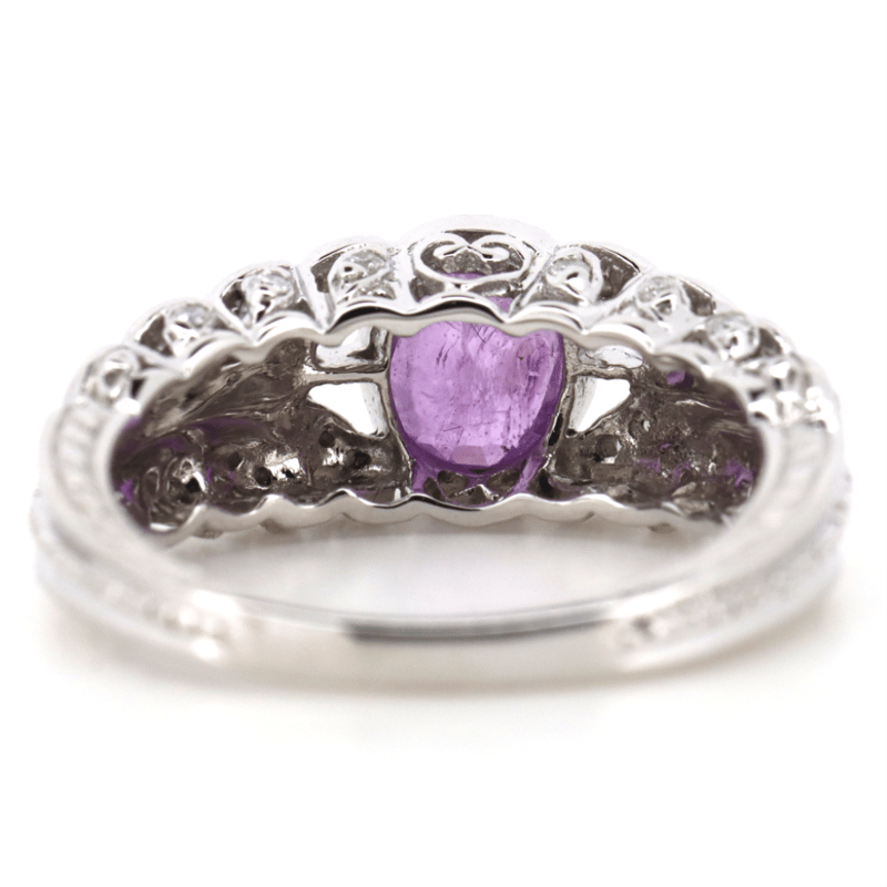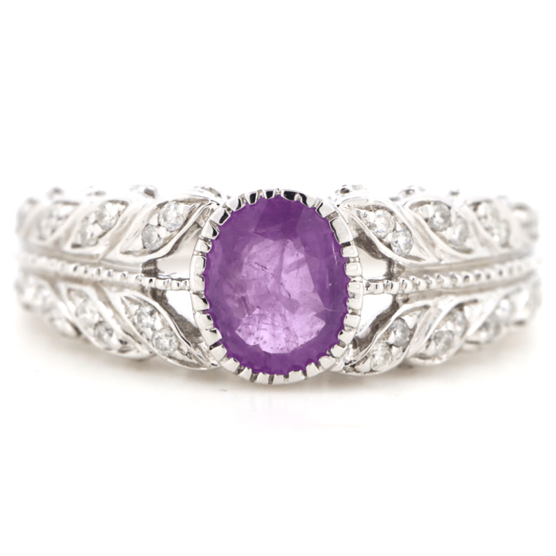 14K WHITE GOLD, PINK SAPPHIRE AND DIAMOND, ART DECO INSPIRED RING. THE CENTRE DESIGN FEATURES, ONE OVAL FACETED CUT, PURPLISH PINK, SAPPHIRE (1.08CT, SLIGHTLY INCLUDED), BEZEL SET. ENCOMPASSING THE DESIGN ARE, 40 ROUND BRILLIANT CUT, DIAMONDS (0.21CT TDW, J-K COLOUR, SI2-I2 CLARITY), BEAD SET. RING SIZE O. Valuations Provided by an Independent Third-Party Professional Not Directly Associated With Lloyds Auctions at AUD $$6,490.00This valuation has been conducted by an independent third-party professional. The valuation amount is an assessment by the issuing valuer and does not reflect the auction value of the item. Any inquiries regarding the valuation should be directed to the issuing valuer (refer to contact details on the certificate), as Lloyds Auctions has no affiliation or influence over the valuation, the valuer, or the stated amount. Condition: Good - Refer Images 0645862+394