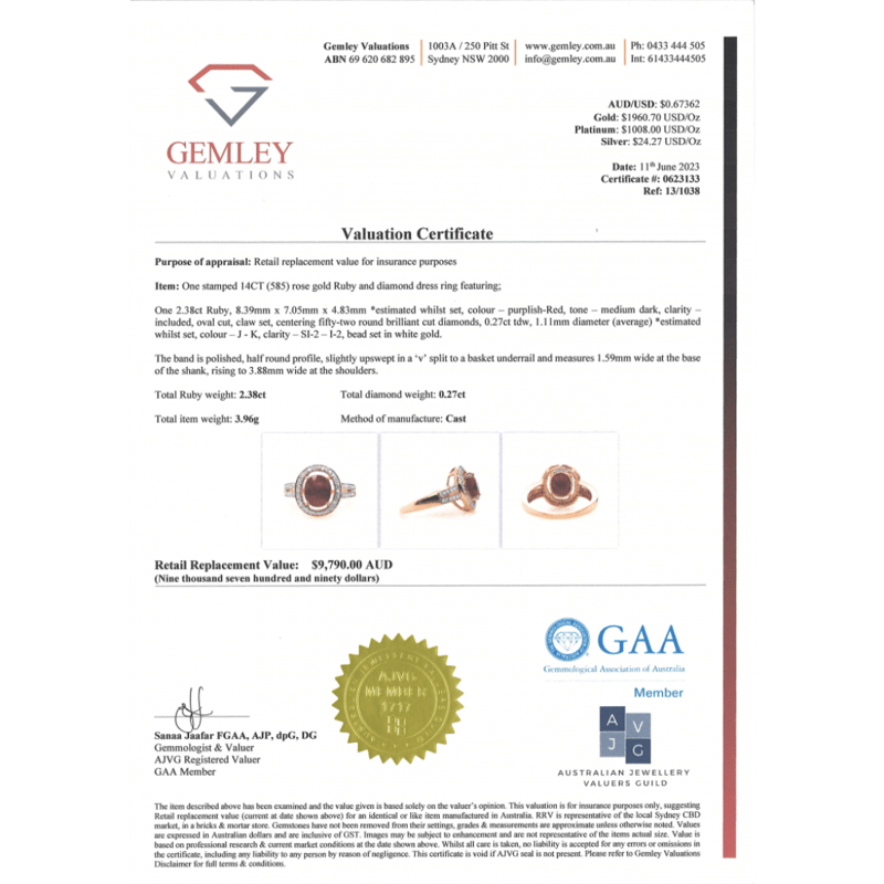 This valuation has been conducted by an independent third-party professional. The valuation amount is an assessment by the issuing valuer and does not reflect the auction value of the item.