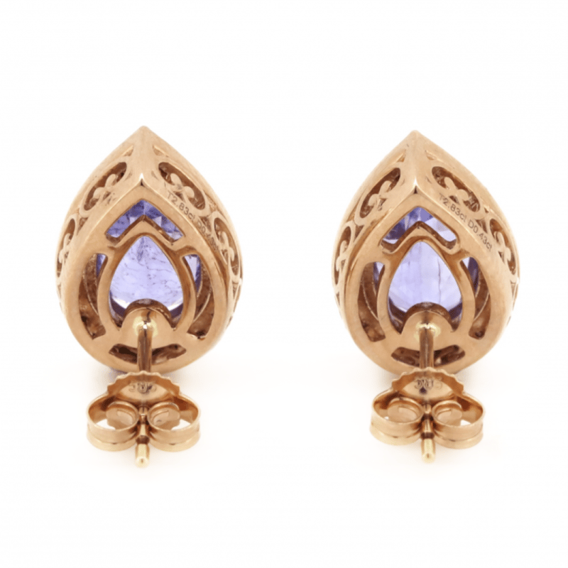 14K ROSE GOLD, TANZANITE AND DIAMOND, HALO STUD EARRINGS. THE CENTRES FEATURE, 2 PEAR CUT, PURPLISH-BLUE, TANZANITES (2.83CT TSW, MODERATE EYE VISIBLE INCLUSIONS), CLAW SET. SURROUNDING THE CENTRES IN HALOS ARE, 44 ROUND BRILLIANT CUT, DIAMONDS (0.43CT TDW, J-K COLOUR, SI2-I2 CLARITY), BEAD SET IN WHITE GOLD. THE EARRINGS HAVE POST BACKS, WITH 14K ROSE GOLD BUTTERFLY CLASPS. Valuations Provided by an Independent Third-Party Professional Not Directly Associated With Lloyds Auctions at AUD $$6,890.00This valuation has been conducted by an independent third-party professional. The valuation amount is an assessment by the issuing valuer and does not reflect the auction value of the item. Any inquiries regarding the valuation should be directed to the issuing valuer (refer to contact details on the certificate), as Lloyds Auctions has no affiliation or influence over the valuation, the valuer, or the stated amount. Condition: Good - Refer Images 0645862+330