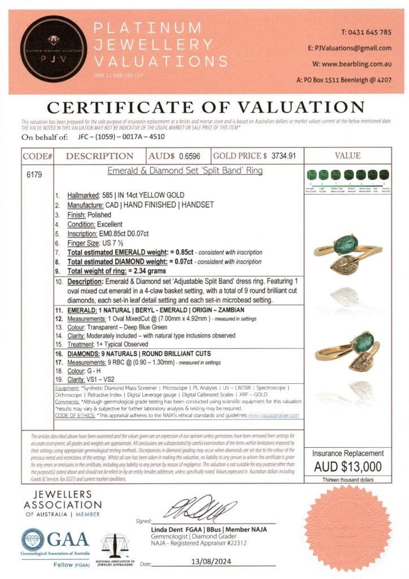 This Insurance Valuation has been provided by a registered Jewellery Valuer and is intended for insurance purposes only. The valuation amount has no bearing on the auction value of the item. Any questions regarding the valuation should be directed to the issuing Valuer (refer to contact details on the certificate) as Lloyds have no association or relationship with the Valuer or the valuation amount contained within the valuation.