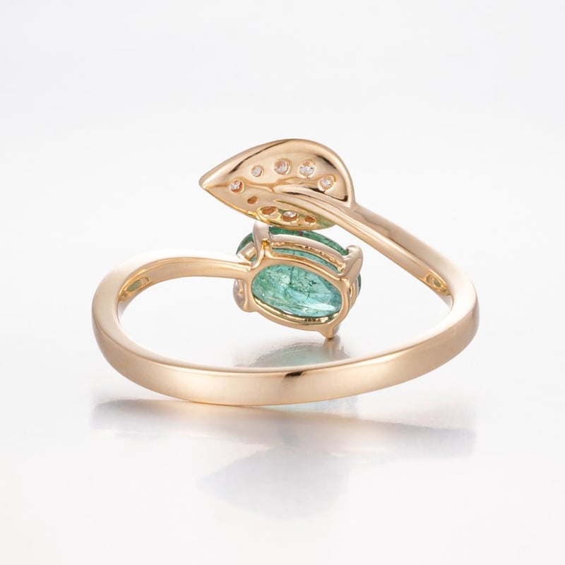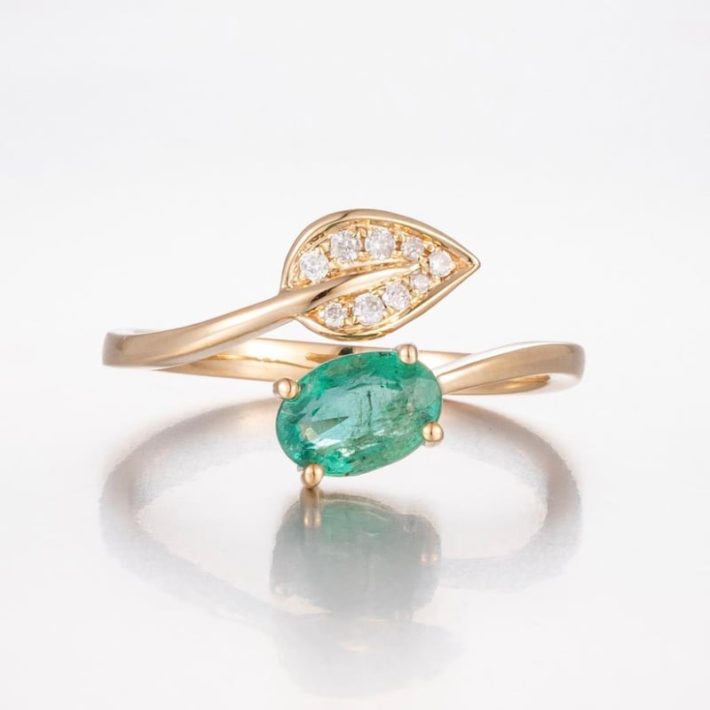 14CT YELLOW GOLD ZAMBIAN EMERALD AND DIAMOND DRESS RING