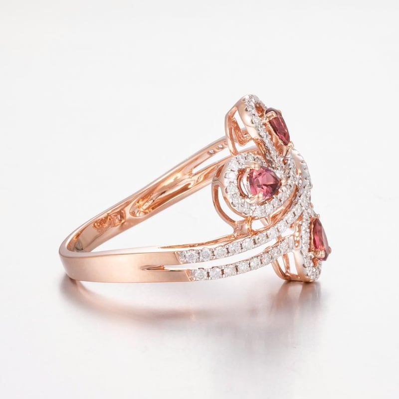 14CT ROSE GOLD TOURMALINE AND DIAMOND DECORATIVE RING