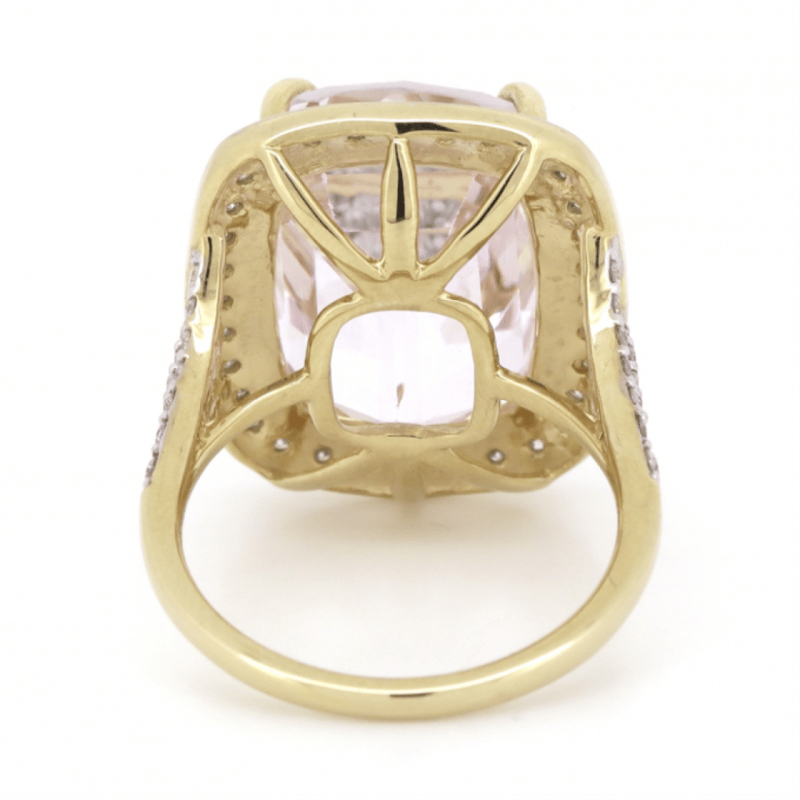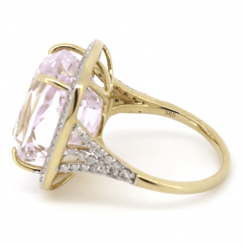 14K YELLOW GOLD, 15.99CT KUNZITE AND DIAMOND, STATEMENT RING.