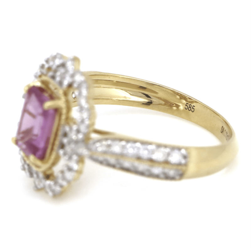 14K YELLOW GOLD, PINK SAPPHIRE AND DIAMOND, DRESS RING.