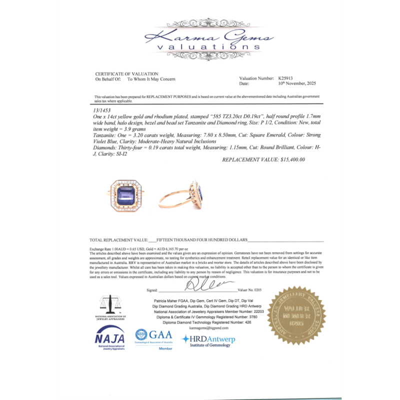 This Insurance Valuation has been provided by a registered Jewellery Valuer and is intended for insurance purposes only. The valuation amount has no bearing on the auction value of the item. Any questions regarding the valuation should be directed to the issuing Valuer (refer to contact details on the certificate) as Lloyds have no association or relationship with the Valuer or the valuation amount contained within the valuation.