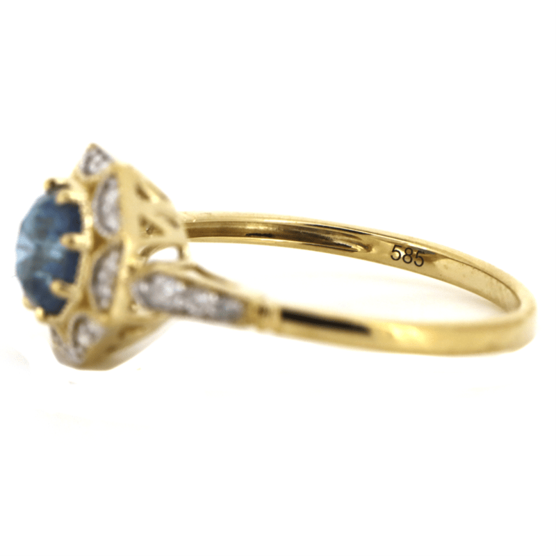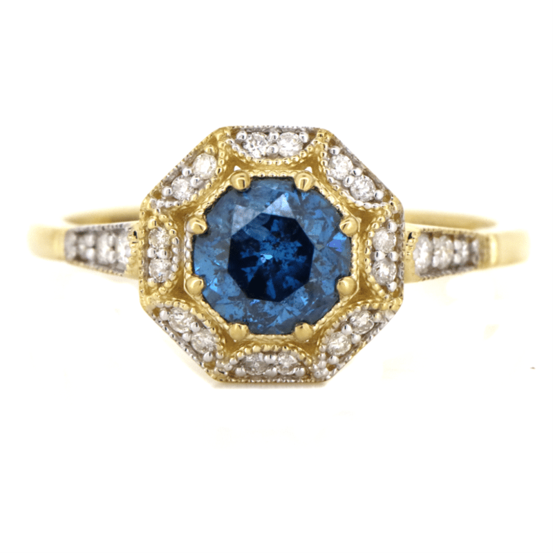 14K YELLOW GOLD, FANCY BLUE DIAMOND AND DIAMOND, RING.
