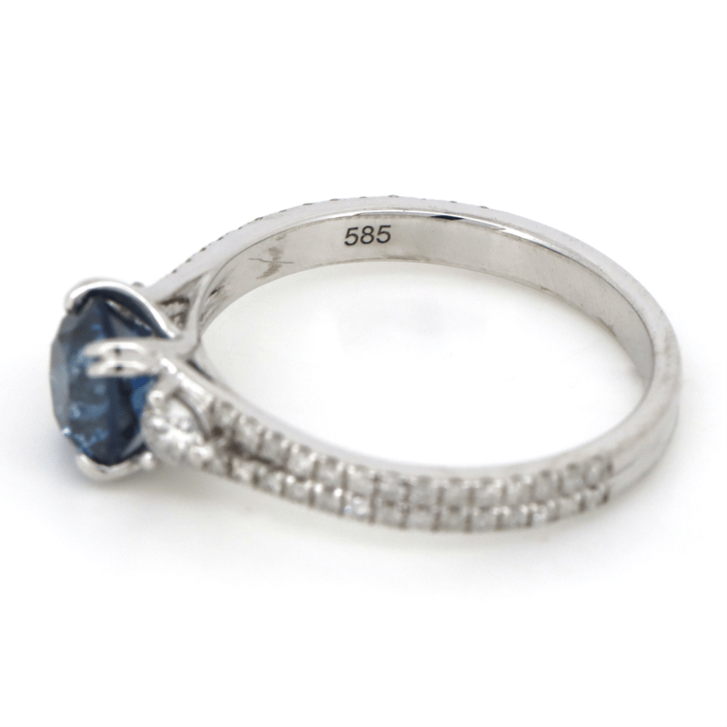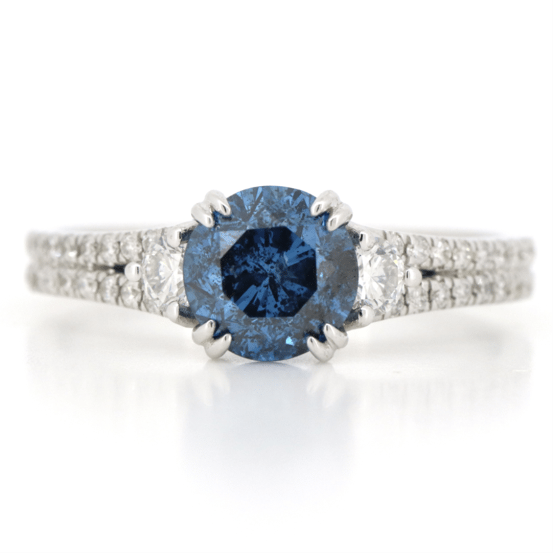 14K WHITE GOLD, BLUE DIAMOND AND DIAMOND, DRESS RING. The Centre Features, One Round Brilliant Cut, Vivid Treated Blue, Diamond (1.42Ct, Si2 Clarity). Flanking Either Side Of The Centre Are, 2 Round Brilliant Cut, Diamonds (0.21Ct Tdw, G-H Colour, Si1 Clarity), And Surrounding The Setting Are, 56 Round Brilliant Cut, Diamonds (0.26Ct Tdw, G-J Colour, Si-I2 Clarity), Claw Set. Ring Size M 1/2. Jewellery Valuations Provided By A Third Party Professional Not Directly Associated With Lloyds Auctions at AUD $$19,600.00This Insurance Valuation has been provided by a registered Jewellery Valuer and is intended for insurance purposes only. The valuation amount has no bearing on the auction value of the item. Any questions regarding the valuation should be directed to the issuing Valuer (refer to contact details on the certificate) as Lloyds have no association or relationship with the Valuer or the valuation amount contained within the valuation. Condition: NEW 0645882+29