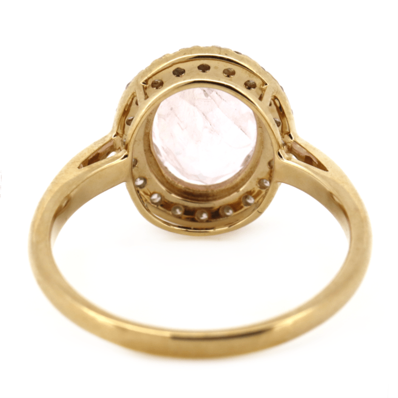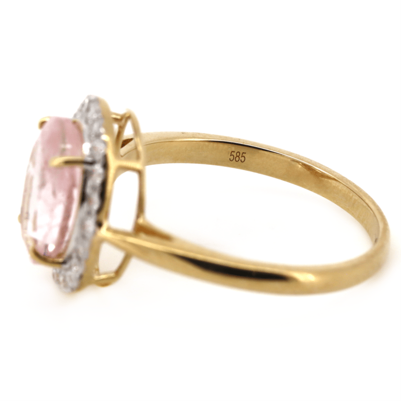 14K YELLOW GOLD, MORGANITE AND DIAMOND, HALO RING.