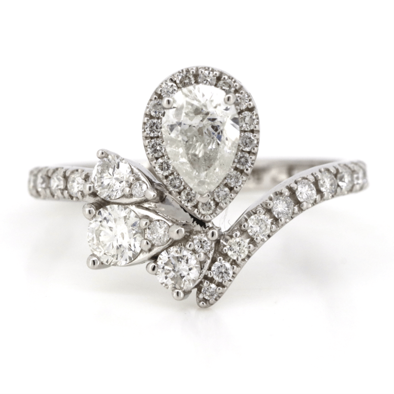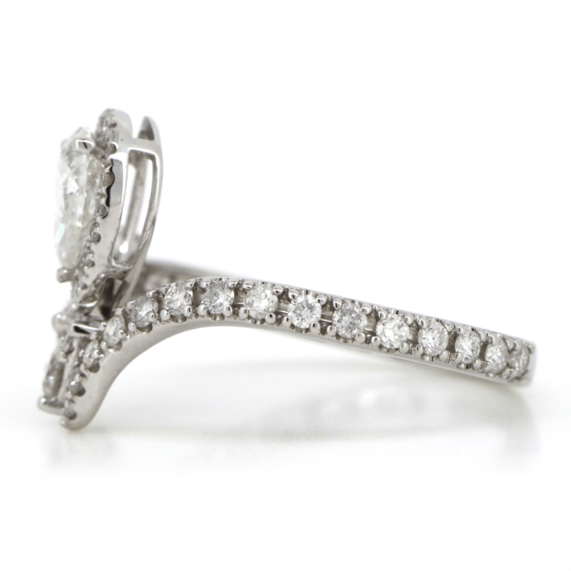 14K WHITE GOLD AND DIAMOND, DRESS RING. The Centre Features, One Pear Brilliant Cut, Diamond (0.51Ct, H-I Colour, I1 Clarity), 3 Claw Set. Encompassing The Centre And Decorating The Band Are, 47 Round Brilliant Cut, Diamonds (0.698Ct Tdw, G-I Colour, Si-I2 Clarity), 3 Claw/Bead Set. Ring Size M 1/2. Jewellery Valuations Provided By A Third Party Professional Not Directly Associated With Lloyds Auctions at AUD $$17,500.00This Insurance Valuation has been provided by a registered Jewellery Valuer and is intended for insurance purposes only. The valuation amount has no bearing on the auction value of the item. Any questions regarding the valuation should be directed to the issuing Valuer (refer to contact details on the certificate) as Lloyds have no association or relationship with the Valuer or the valuation amount contained within the valuation. Condition: NEW 0645882+53