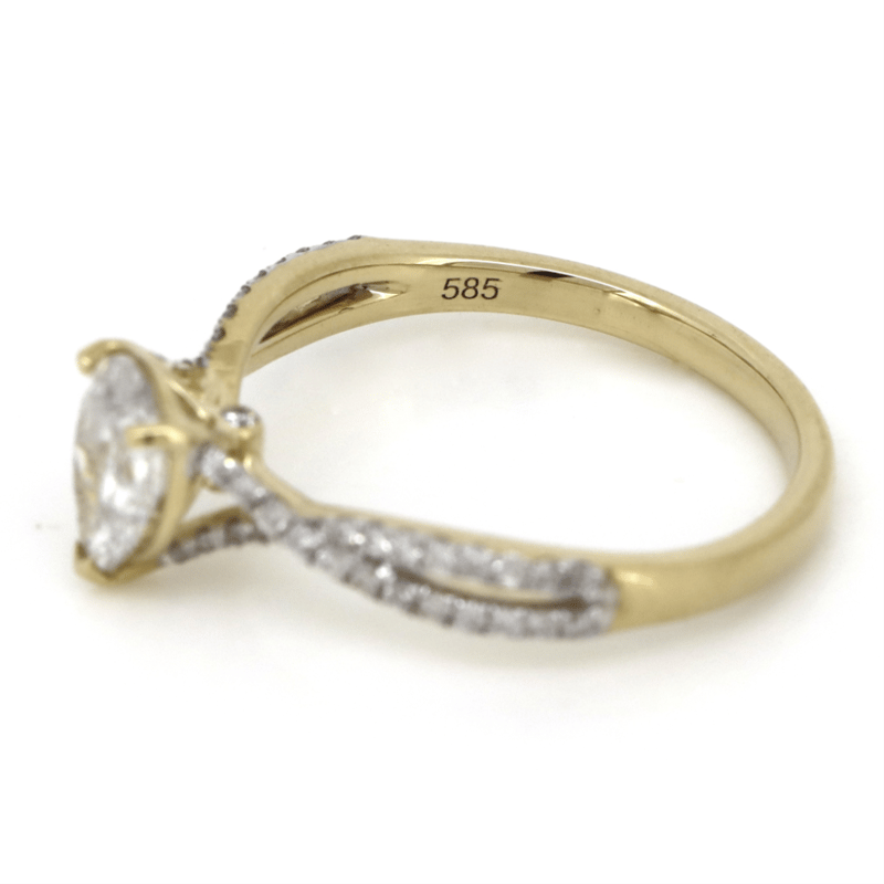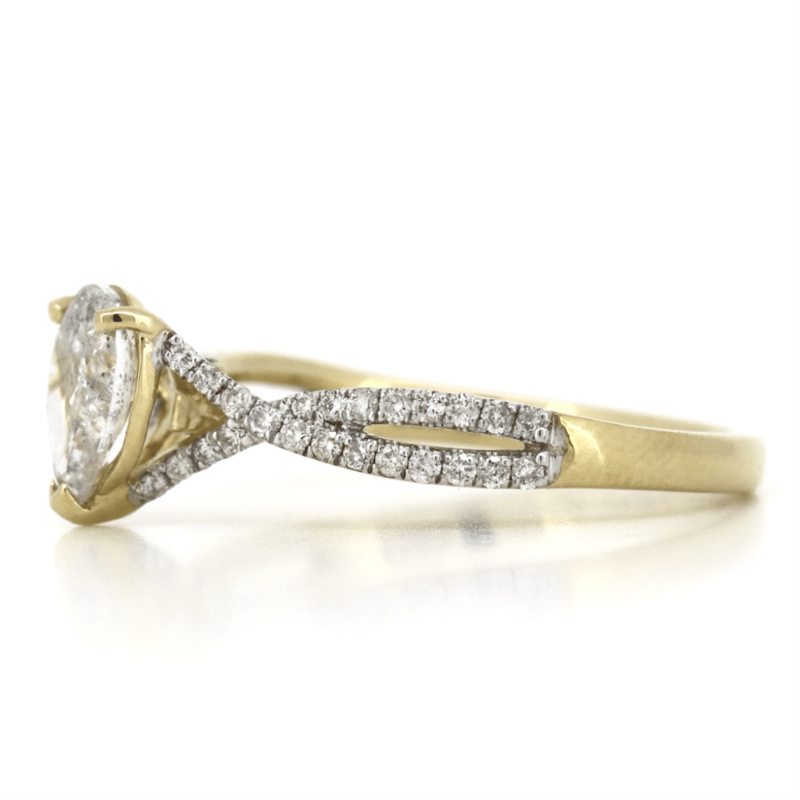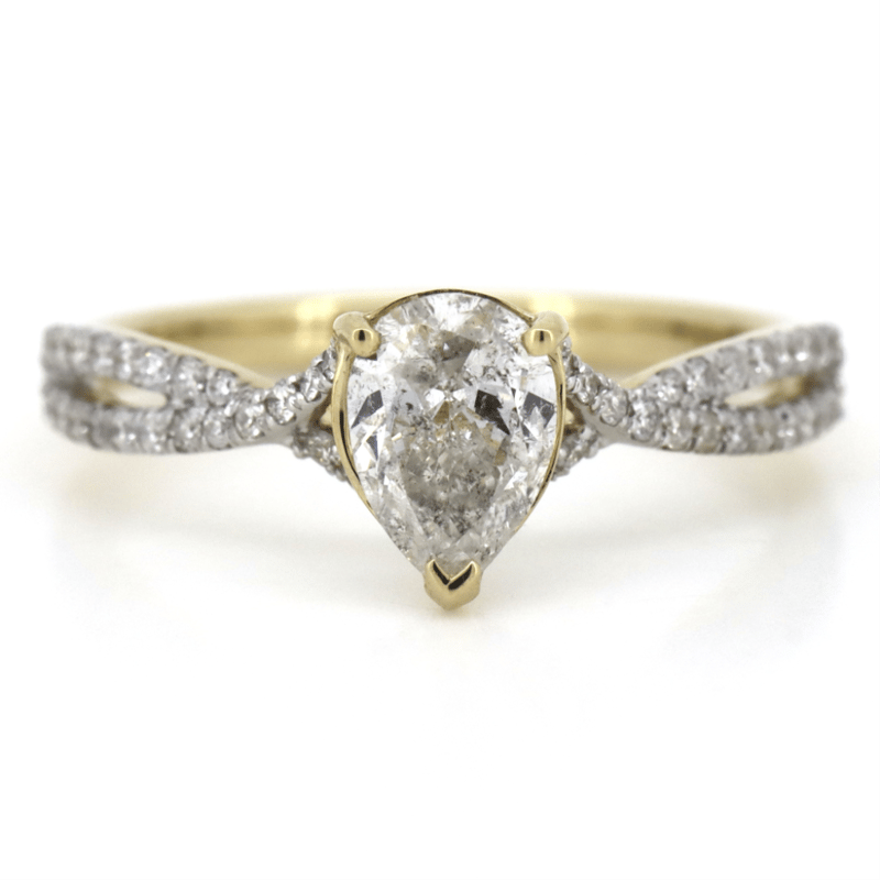 The Centre Features, One Pear Brilliant Cut, Diamond (0.70Ct, H-I Colour, I2 Clarity), 3 Claw Set. Decorating The Band And Rail Are, 50 Round Brilliant Cut, Diamonds (0.237Ct Tdw, G-K Colour, Si-I2+ Clarity), Bead Set. Ring Size M.