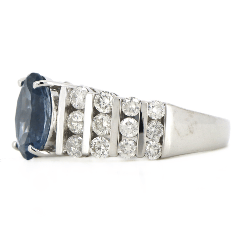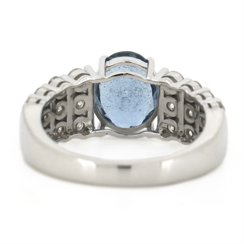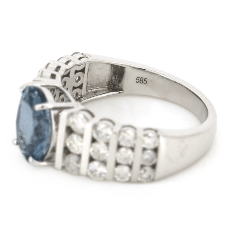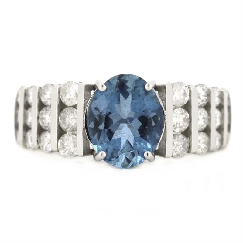14K WHITE GOLD, AQUAMARINE AND DIAMOND, DRESS RING.
