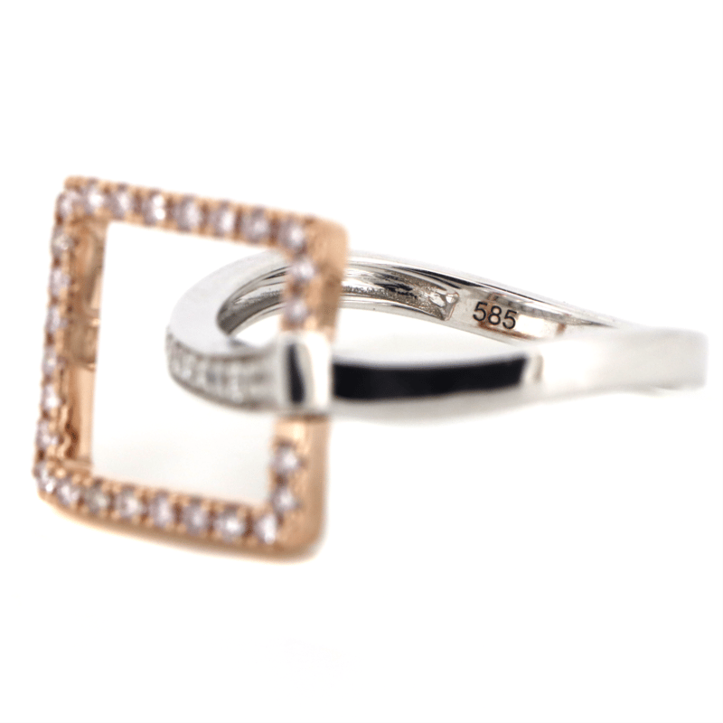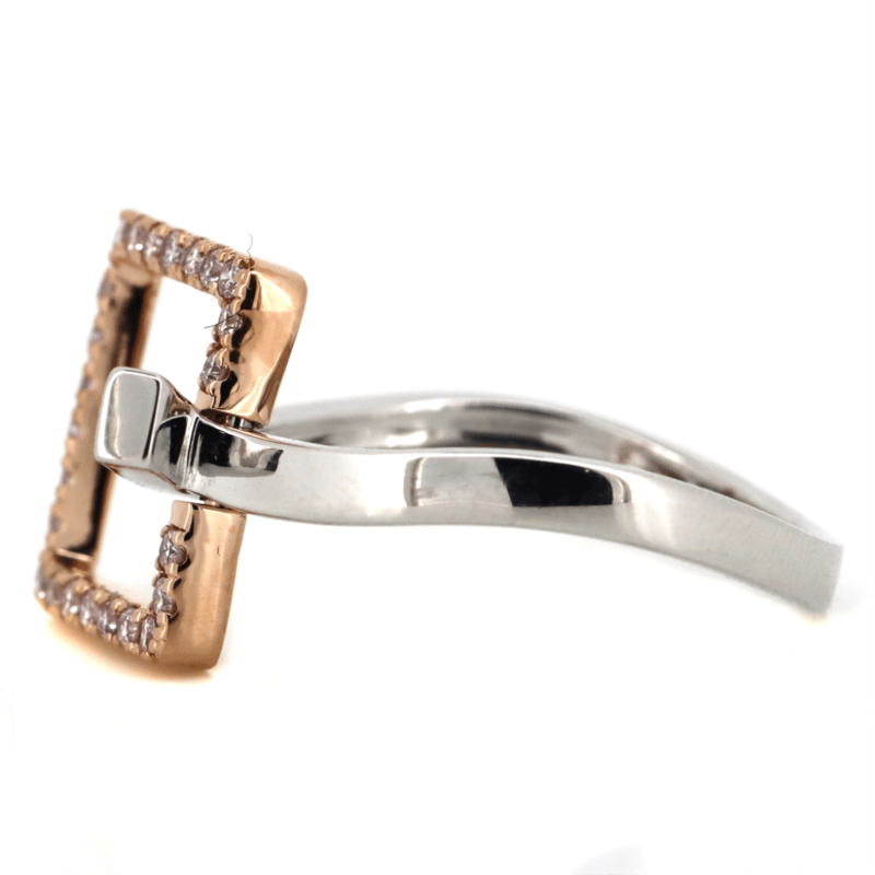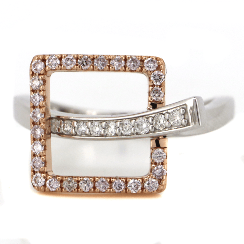 14K WHITE/ROSE GOLD, PINK DIAMOND AND DIAMOND, CONTEMPORARY RING.