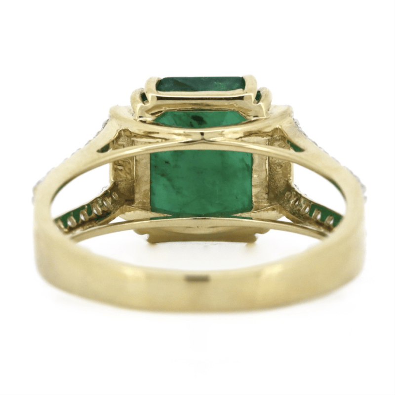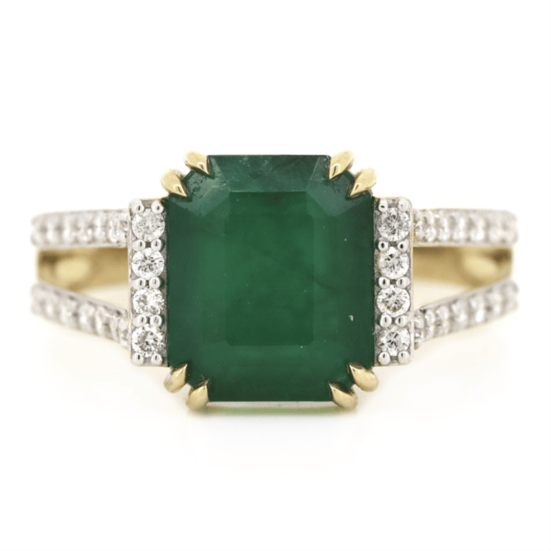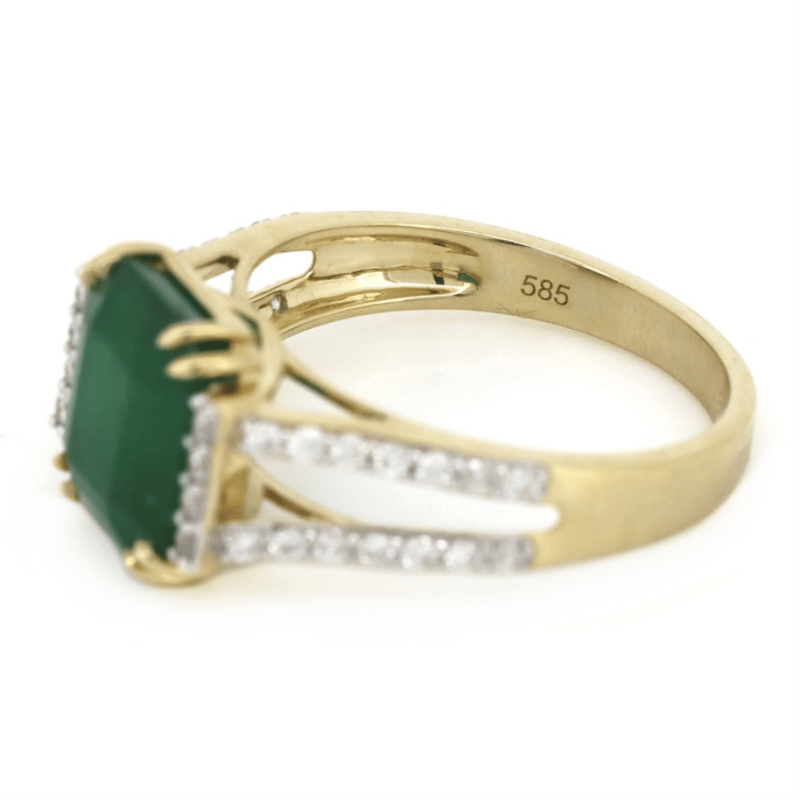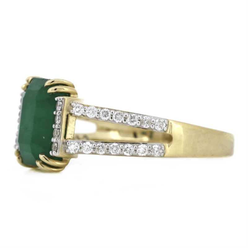 14K YELLOW GOLD, EMERALD AND DIAMOND, DRESS RING.