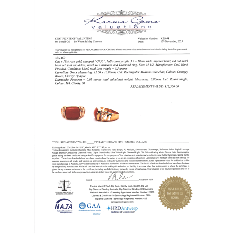 This valuation has been conducted by an independent third-party professional. The valuation amount is an assessment by the issuing valuer and does not reflect the auction value of the item.